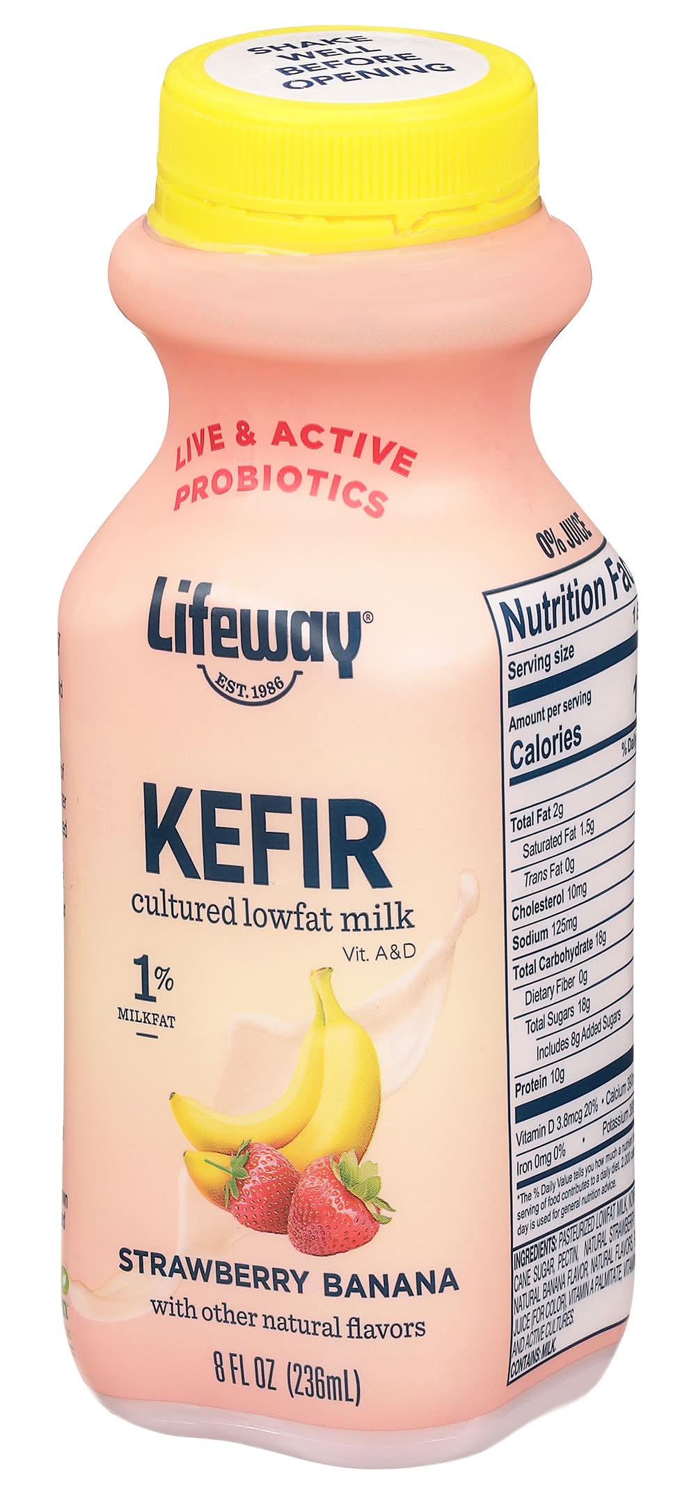 Kefir, Lowfat Milk, Cultured, Strawberry Banana Packaging: Reusable