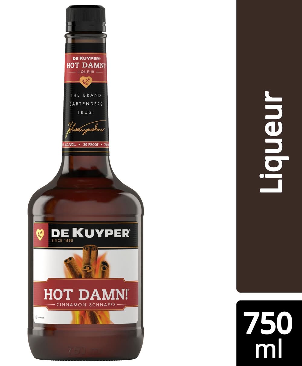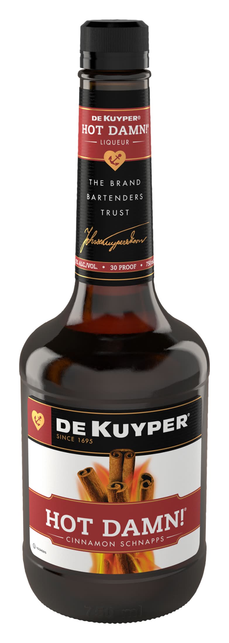 DeKuyper Hot Damn! Cinnamon Schnapps Liqueur starts any night off with a bang. With its bold, delicious flavor of fiery cinnamon, this liqueur is the perfect way to warm up shots and cocktails. Extremely versatile with endless combination possibilities, the simple but distinct taste of cinnamon pairs with almost any type of mixer for a fun and spicy cocktail. Pair it with DeKuyper Peppermint Schnapps for a Fire and Frost. With a heritage dating back more than 300 years, DeKuyper Cordials & Liqueurs continues to be on the cutting edge of the spirits industry. DeKuyper's evolution has been successful through the combination of its rich, traditional expertise and modern innovation, creating mixable and versatile cordials, liqueurs, crèmes, brandies, and schnapps made from the world's finest ingredients. DeKuyper has been the brand bartenders trust to add color, flavor and fun to any cocktail. Alcohol by volume: 15%
