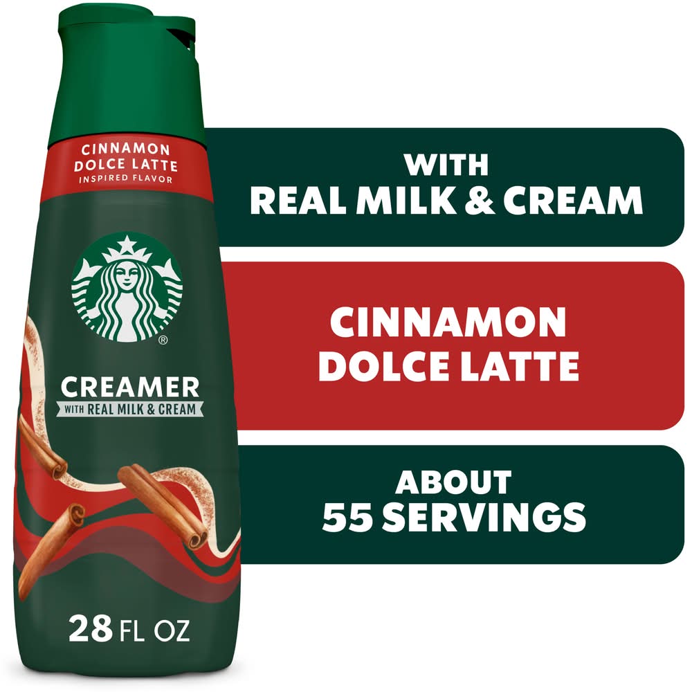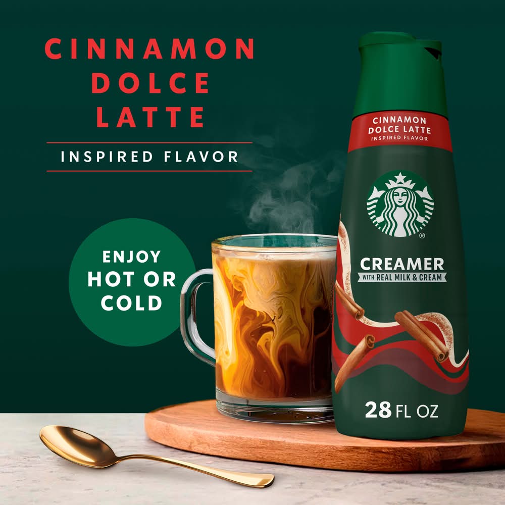 This creamer is carefully crafted with rich flavors of cinnamon streusel with real milk & cream. Each sip is a testament to our dedication to quality and flavor. Whether you’re enjoying a hot cup in the morning or an iced coffee during your afternoon break, this creamer pairs perfectly with our coffee for an oh-so-delicious cup every time. • Flavor: Cinnamon dolce latte • Size: 28 OZ • Packaging: Reusable