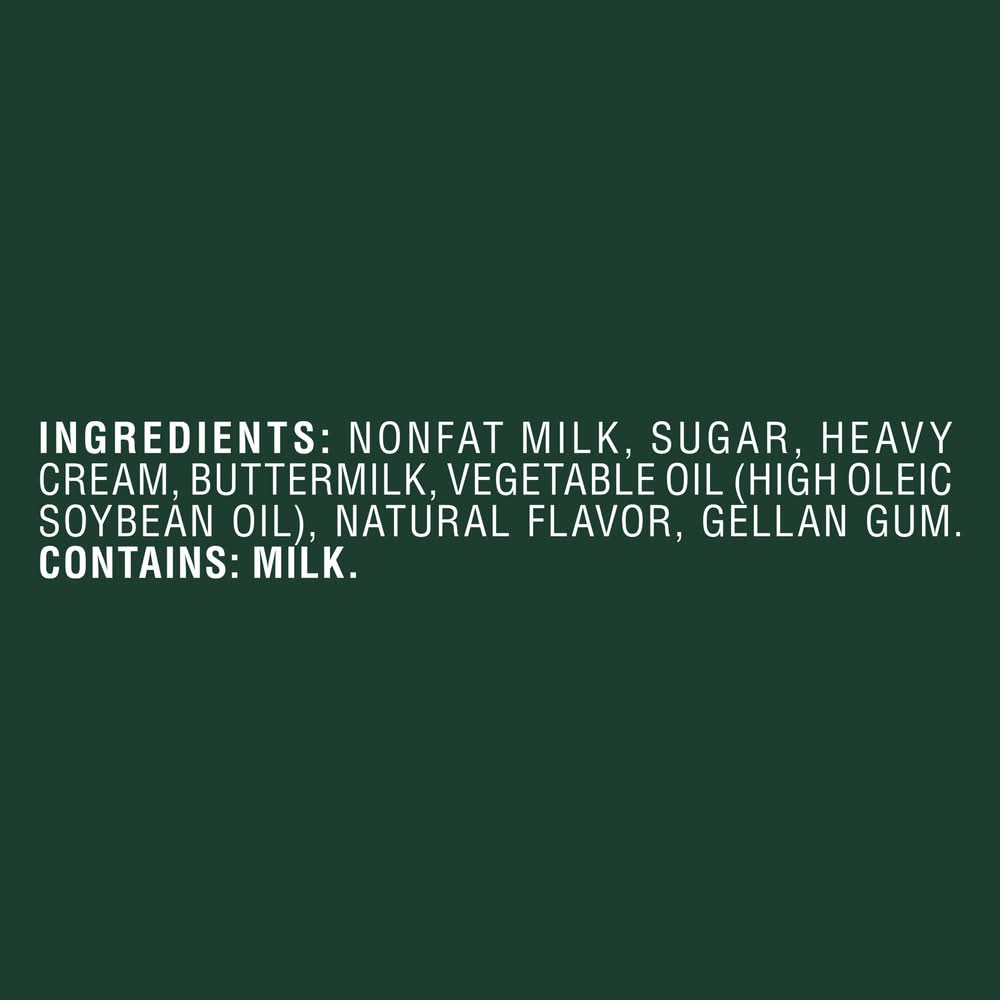 Ingredients: Nonfat Milk, Sugar, Heavy Cream, Buttermilk, Vegetable Oil (High Oleic Soybean Oil), Natural Flavor, Gellan Gum Contains: Soybeans, Milk