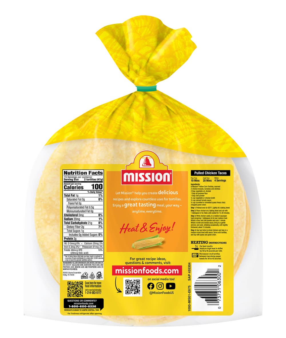 Mission Low Fat Super Soft Yellow Corn Tortillas (25 oz, 30 ct)