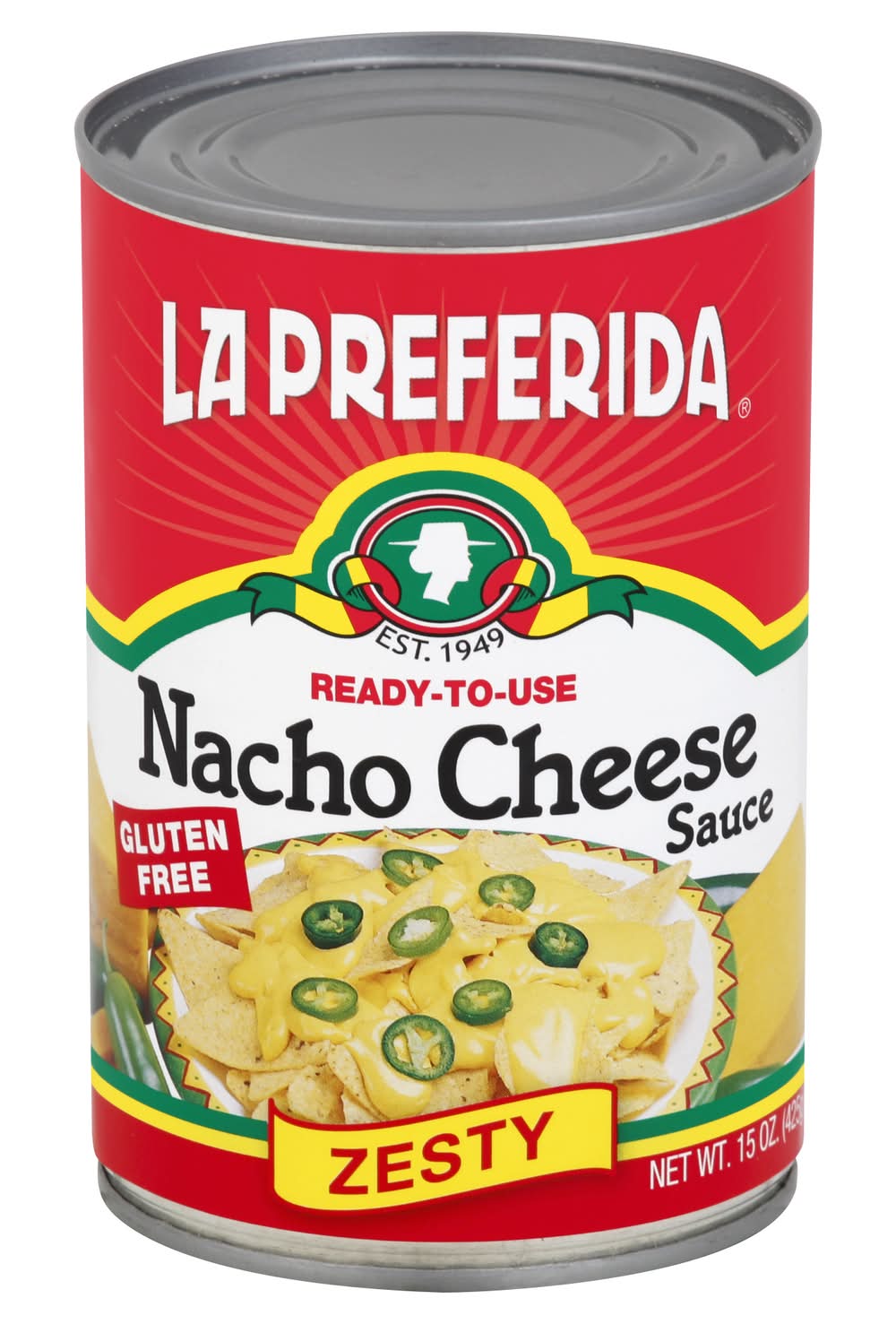 Our gluten-free Zesty Nacho Cheese Sauce is a party-planning dream. This heat and serve staple pairs perfectly with jalapenos, tomatoes and diced green chiles for a spicy dip or simply pour over your favorite chips. Mix our creamy canned nacho cheese sauce with your favorite salsa and drizzle over stuffed bell peppers, tacos or tostadas for an extra kick. • Flavor: Nacho cheese • Size: 15 OZ • La Preferida, PO Box 32260 Chicago, IL 60632