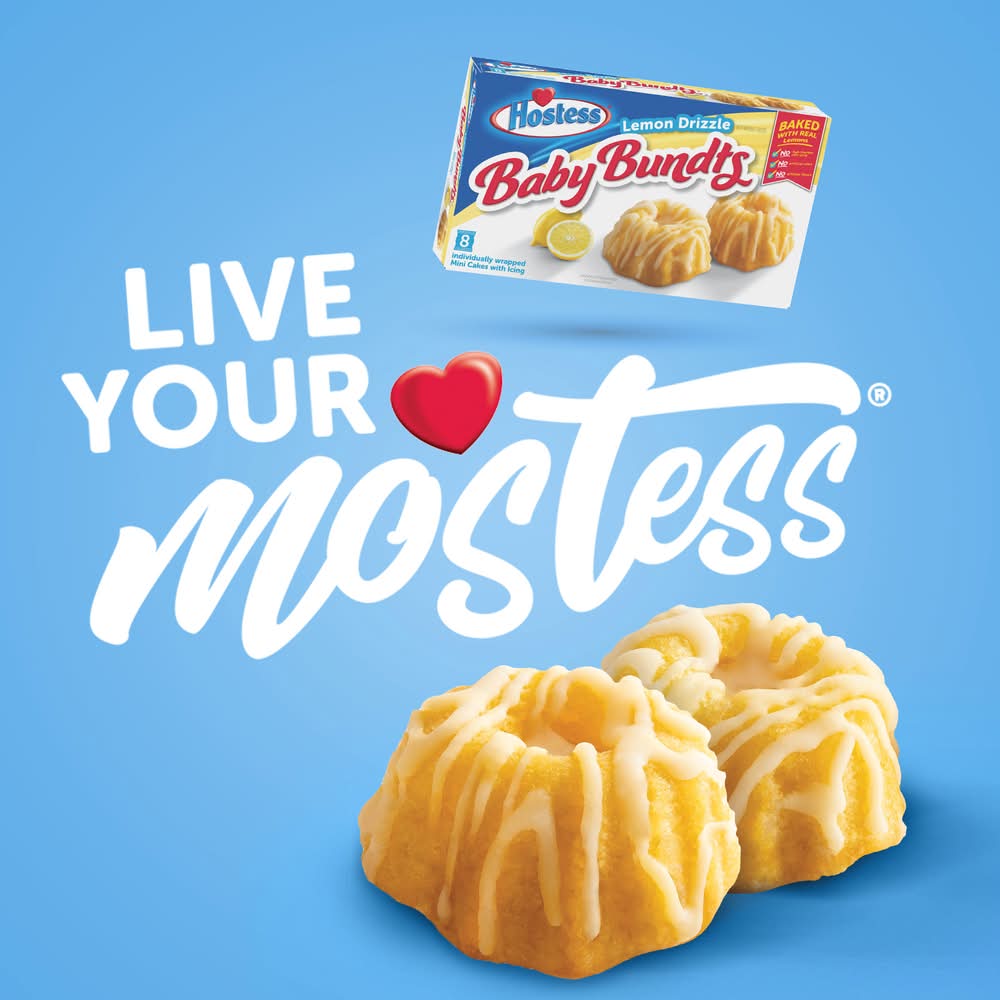 Say hello Hostess Lemon Drizzle Baby Bundts! Get a sweet twist on a familiar favorite with these delicious little Bundt cakes. Made of moist lemon cake with a joyful drizzle on top, youll love the burst of flavor in your mouth. Plus, their delightful aroma serves up that extra boost of happiness to start the day with a smile. These HOSTESS cakes make a yummy morning snack and fit right in your bag when youre off to work or school. Theyre the perfect pairing for morning coffee or hot tea. Kids will love these sweet treats with a cup of juice. With HOSTESS Baby Bundts cakes around, youre sure to LIVE YOUR MOSTESS. • Flavor: Lemon drizzle • Packaging: Reusable