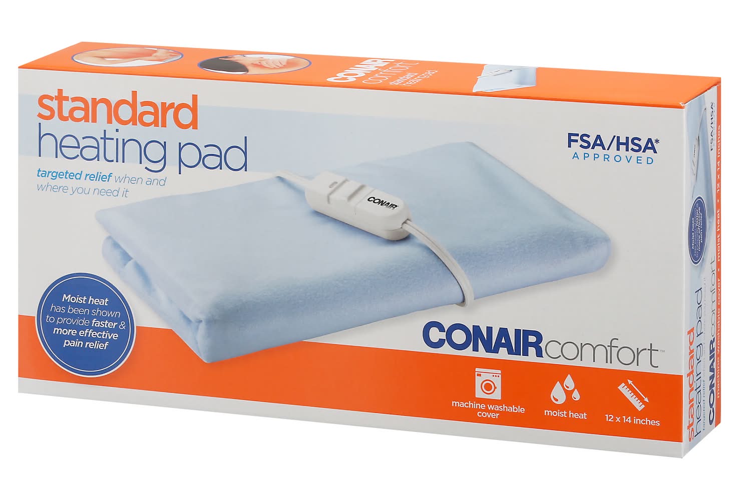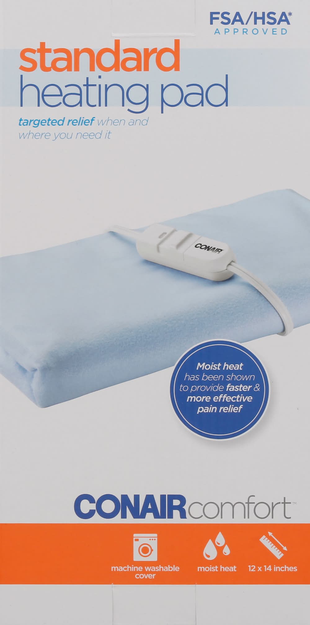 HP01XG Targeted relief when and where you need it. FSA/HSA (Flexible Spending Accounts (FSAs) and Health Saving Accounts (HSAs) are health benefit accounts that allow you to contribute a portion of your salary or wages (before taxes) to cover medical expenses that you would otherwise pay for out of pocket) approved. Moist heat has been shown to provide faster & more effective pain relief. Machine washable cover. Moist heat. Revive, refresh, renew, relieve, recover, restore, replenish, reinvigorate. Size: 12x14 in