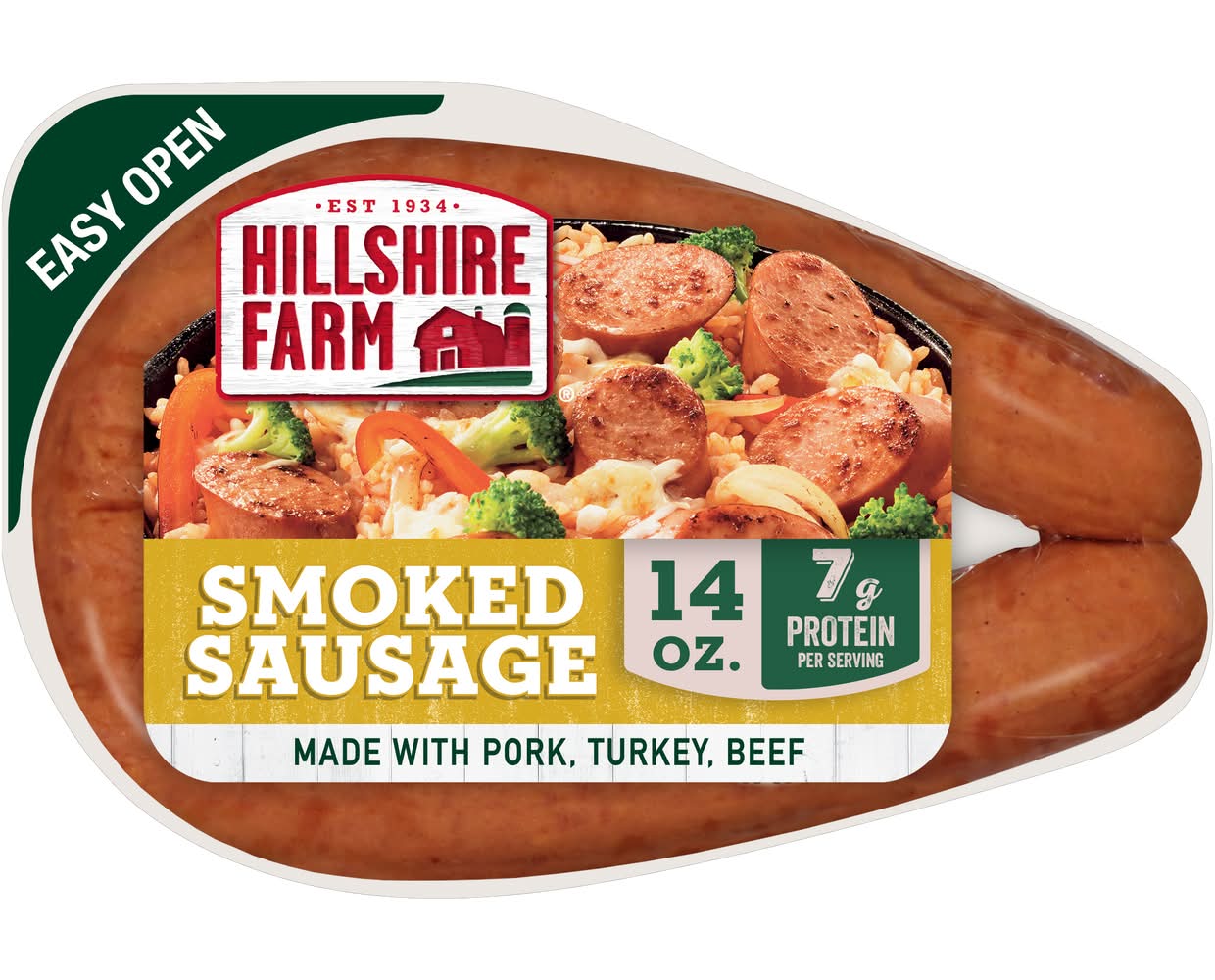 Handcrafted with natural spices and only our finest cuts of meat, Hillshire Farm Smoked Sausage is the delicious answer to any weeknight family dinner. This delicious cooked sausage is made with pork, turkey and beef, ensuring that every bite has a savory, mouthwatering taste. From soups to stews, Hillshire Farm sausage is an instant family favorite. Keep precooked sausage refrigerated. The Hillshire Brands Company, Chicago, IL, 60607
