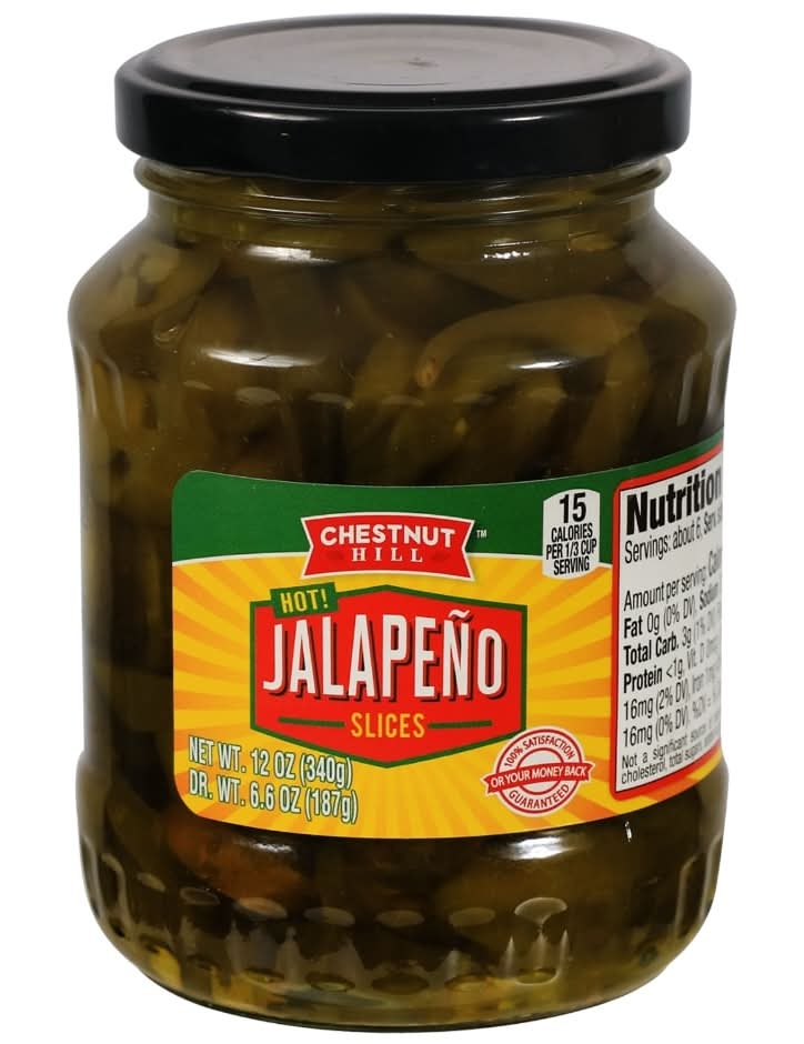 To those who like a little heat in their meals these Chestnut Hill Hot Jalapeno Slices are the perfect thing to keep in your kitchen. Easy to add to many recipes and they cost nearly nothing.