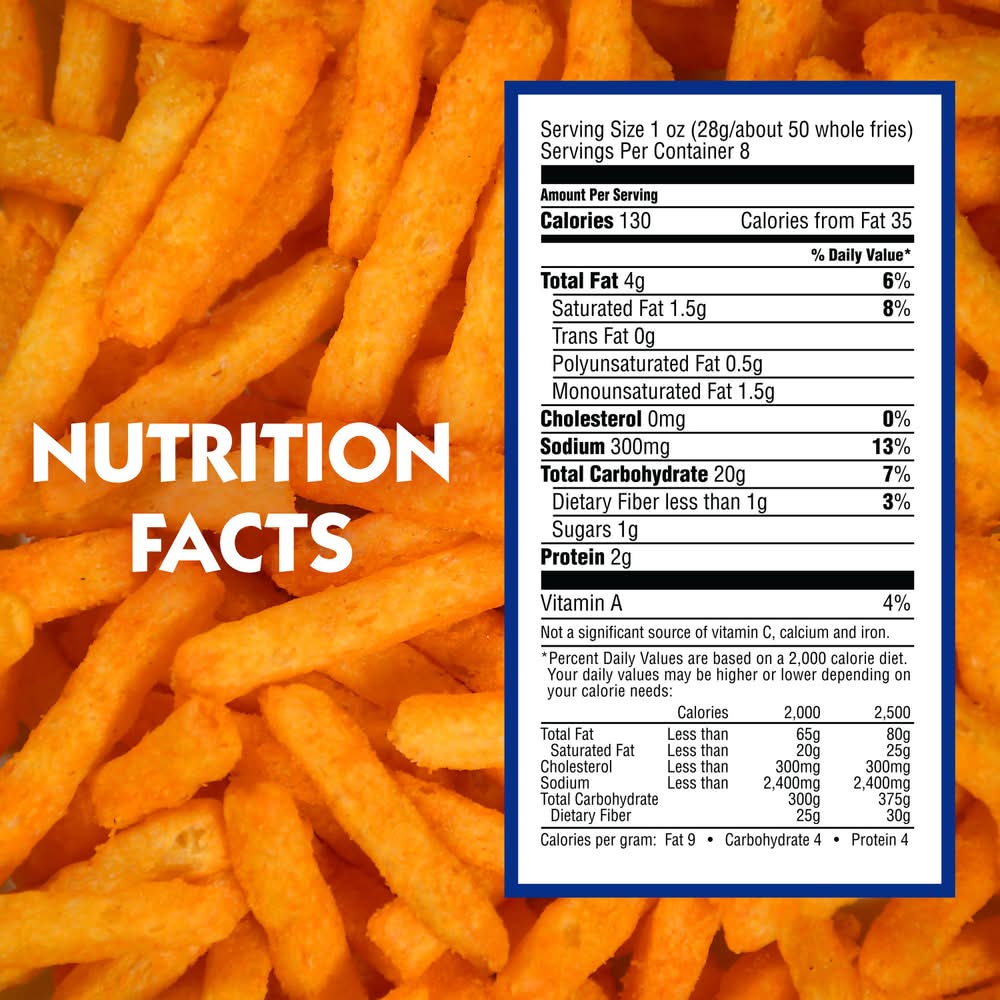 Treat your taste buds to a heaping helping of nostalgia with Hot Fries. Big Bag of Hot Fries packs a powerful punch and flavorful kick with every bite. Switch up your snack routine with the snack that looks like a fry and crunches like a chip. Spicy but not too hot, Big Bag Hot Fries turn up the heat just enough. Road trips and dorm room study breaks have never tasted spicier. • Flavor: Hot fries • Conagra Brands, PO Box 3534,Chicago,IL,60654 • Packaging: Reusable
