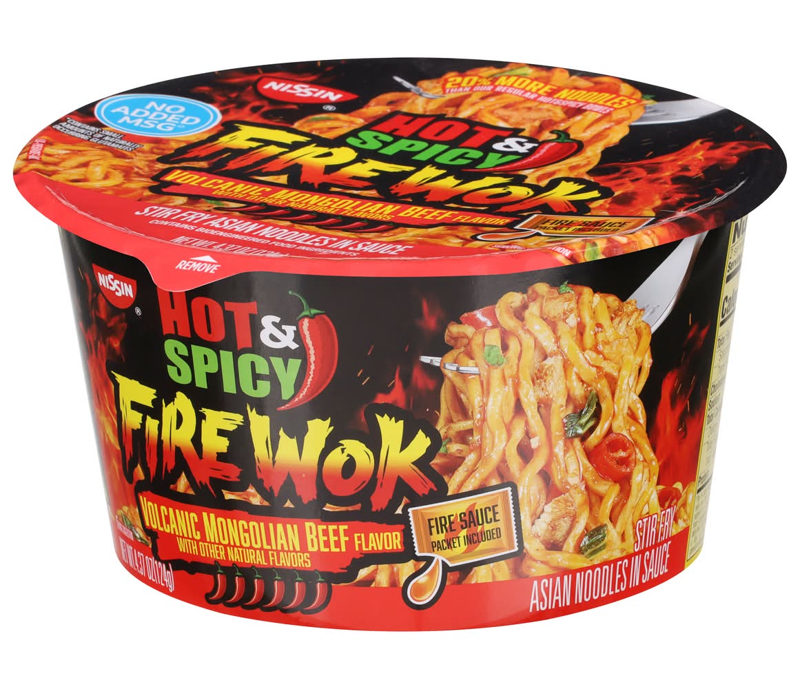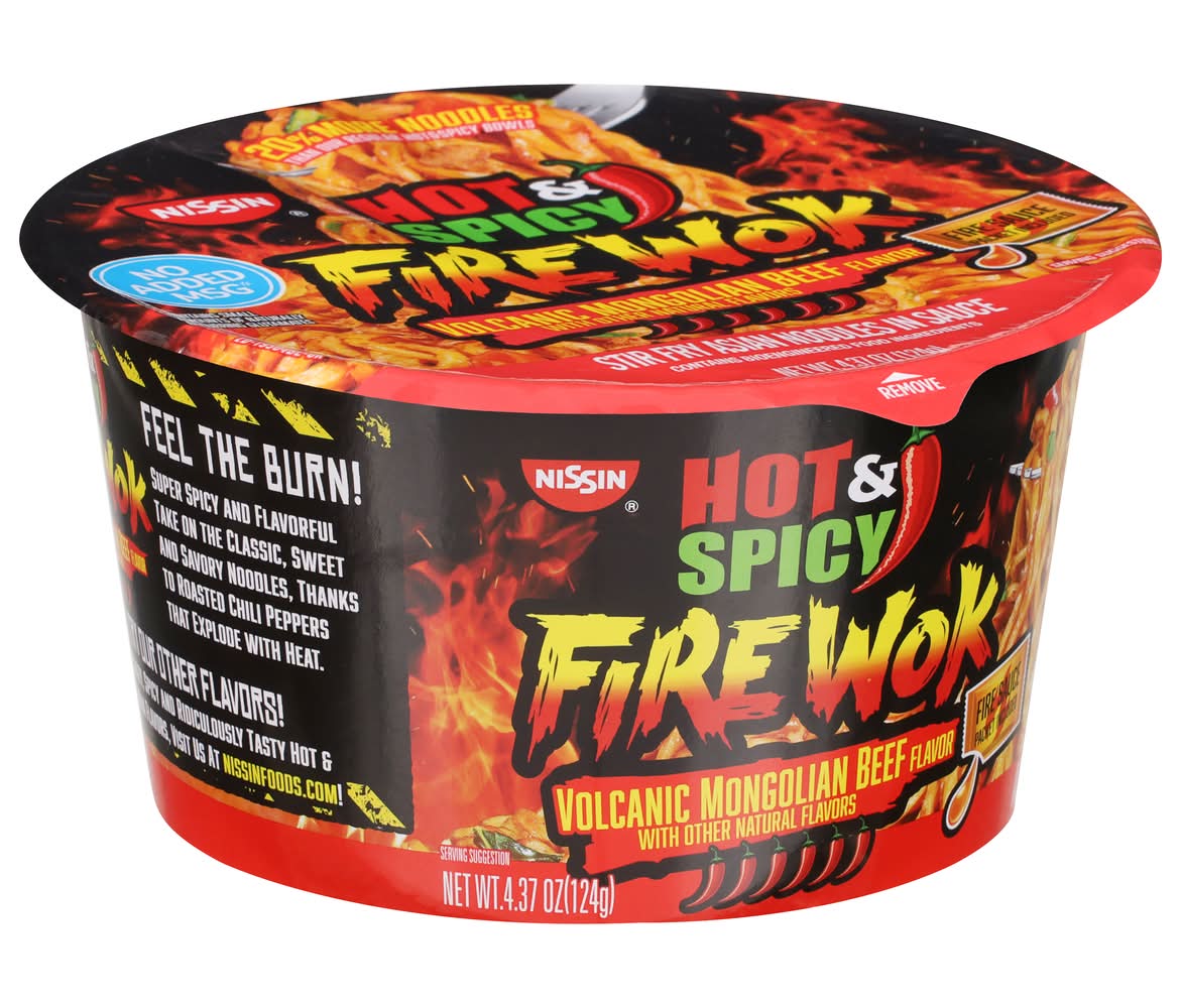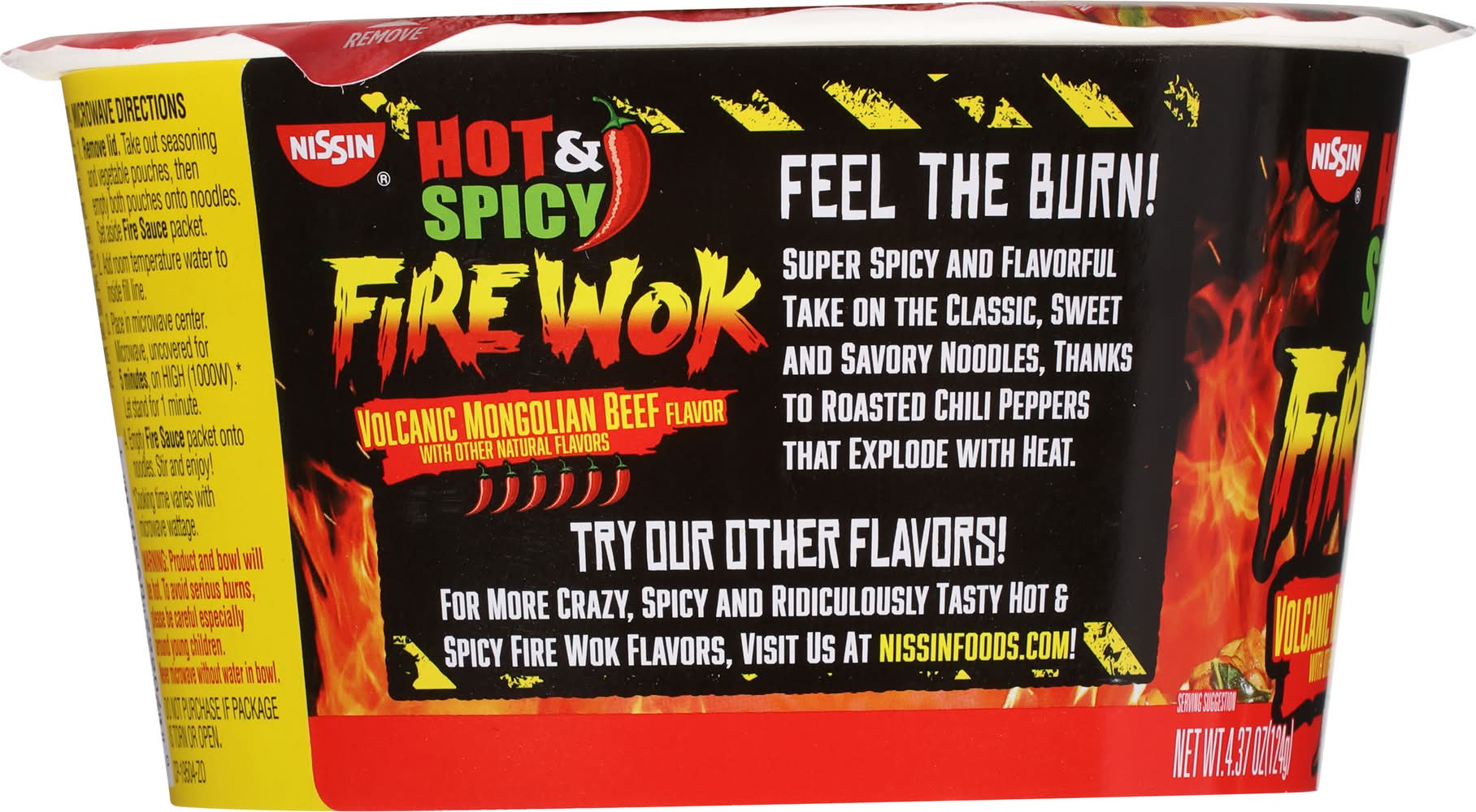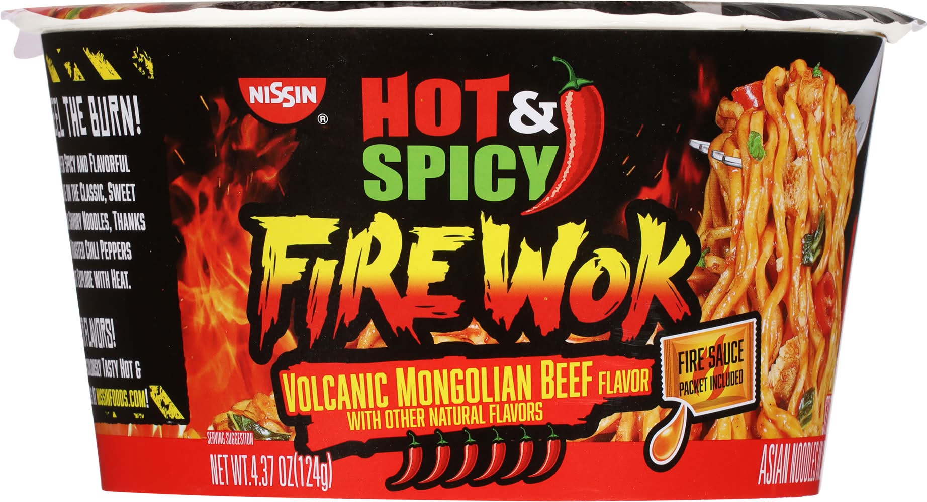 Nissin Wok Hot & Spicy Volcanic Mongolian Beef Flavor Stir Fry Asian Noodle in Sauce (4.37 oz)