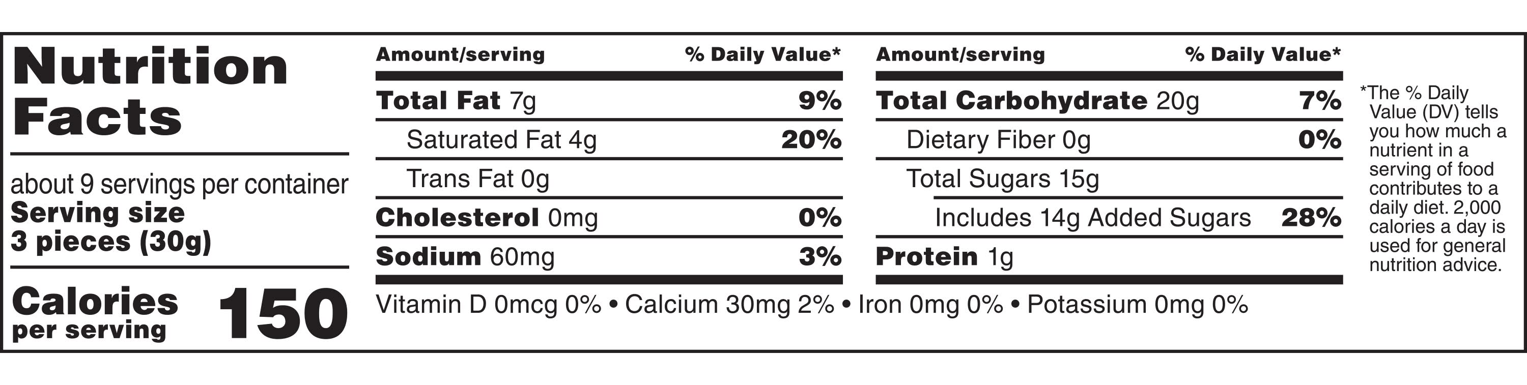 Ingredients: MILK CHOCOLATE (SUGAR, COCOA BUTTER, CHOCOLATE, SKIM MILK, LACTOSE, MILKFAT, SOY LECITHIN, PGPR), ENRICHED WHEAT FLOUR (WHEAT FLOUR, NIACIN, REDUCED IRON, THIAMIN MONONITRATE, RIBOFLAVIN, FOLIC ACID), SUGAR, PALM OIL, CORN SYRUP, SKIM MILK, DEXTROSE; LESS THAN 2% OF: SALT, COCOA, SOY LECITHIN, MODIFIED CORNSTARCH, BAKING SODA, ARTIFICIAL FLAVOR. Contains: ALLERGY INFORMATION: CONTAINS MILK, SOY AND WHEAT. MAY CONTAIN PEANUTS. Additives: Genetically Modified Ingredients