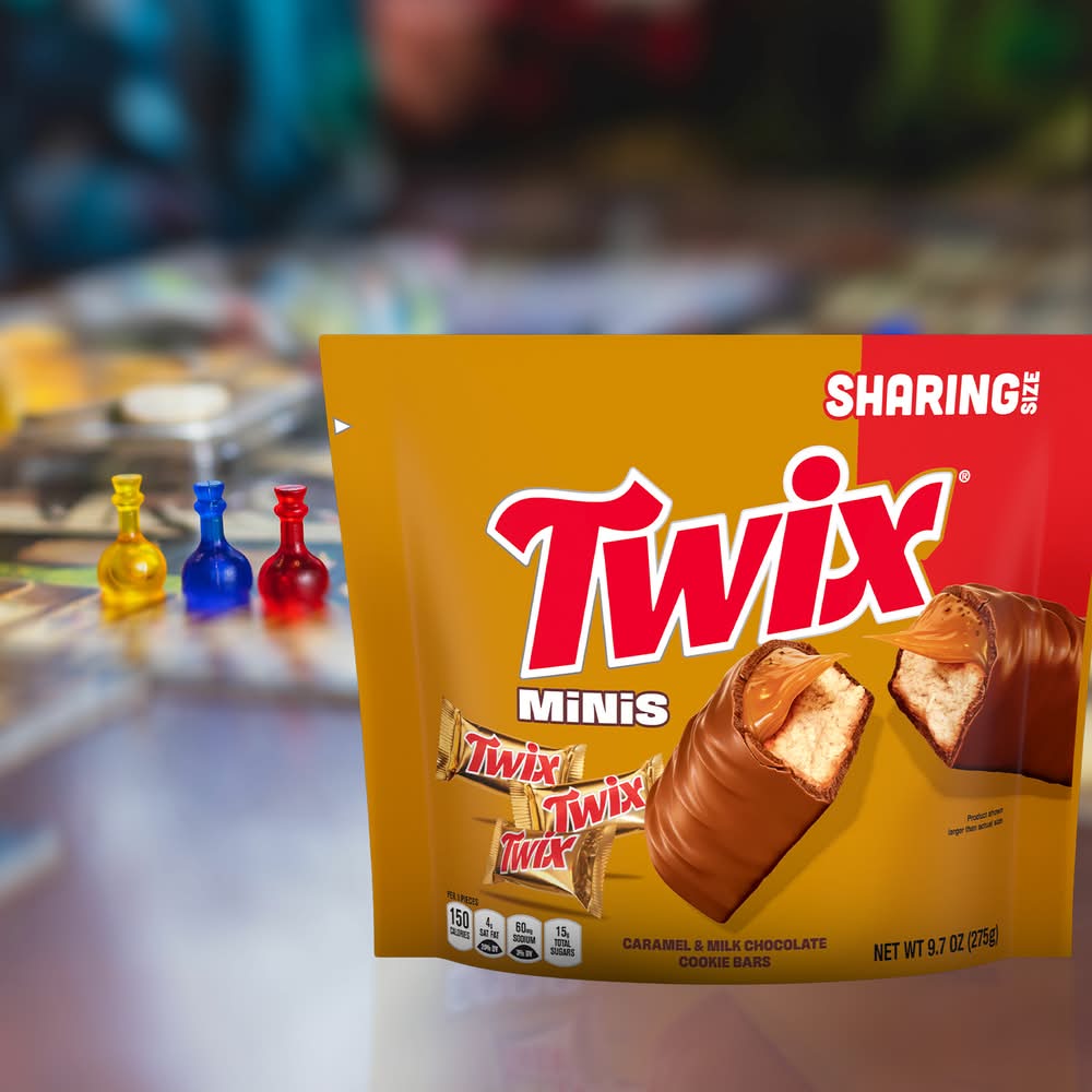 Get ready for a sweet adventure with TWIX Minis Milk Chocolate Candy Bars. Each mini milk chocolate treat is a bite of creamy milk chocolate, gooey caramel, and crunchy cookie. They're the ultimate treat for any occasion! Planning a road trip? Perfect! Hosting a movie marathon? You bet! Want to add a little extra sweetness to your lunchbox? Absolutely! Individually wrapped for easy sharing (or not!), these mini bars are just as fun to enjoy solo as they are with friends. I mean, what are sharing size candy bags for? Two is more than one! Treat yourself to TWIX Minis Now! Add to your cart today. Contains one (1), 9.7-ounce sharing size resealable bag of individually wrapped mini TWIX Caramel and Milk Chocolate Cookie Candy Bars Every bite of a mini TWIX chocolate bar is an experience of delicious milk chocolate, gooey caramel and crunchy cookie This special sharing size pack is perfect for those moments when you and loved ones need a crunchy pick me up Treat yourself and others with crunchy TWIX Minis chocolate bars while on a road trip, during movie night, or at lunch time These individually wrapped chocolate bars are the perfect party essentials, from party favors to piñatas Flavor: Caramel milk chocolate
