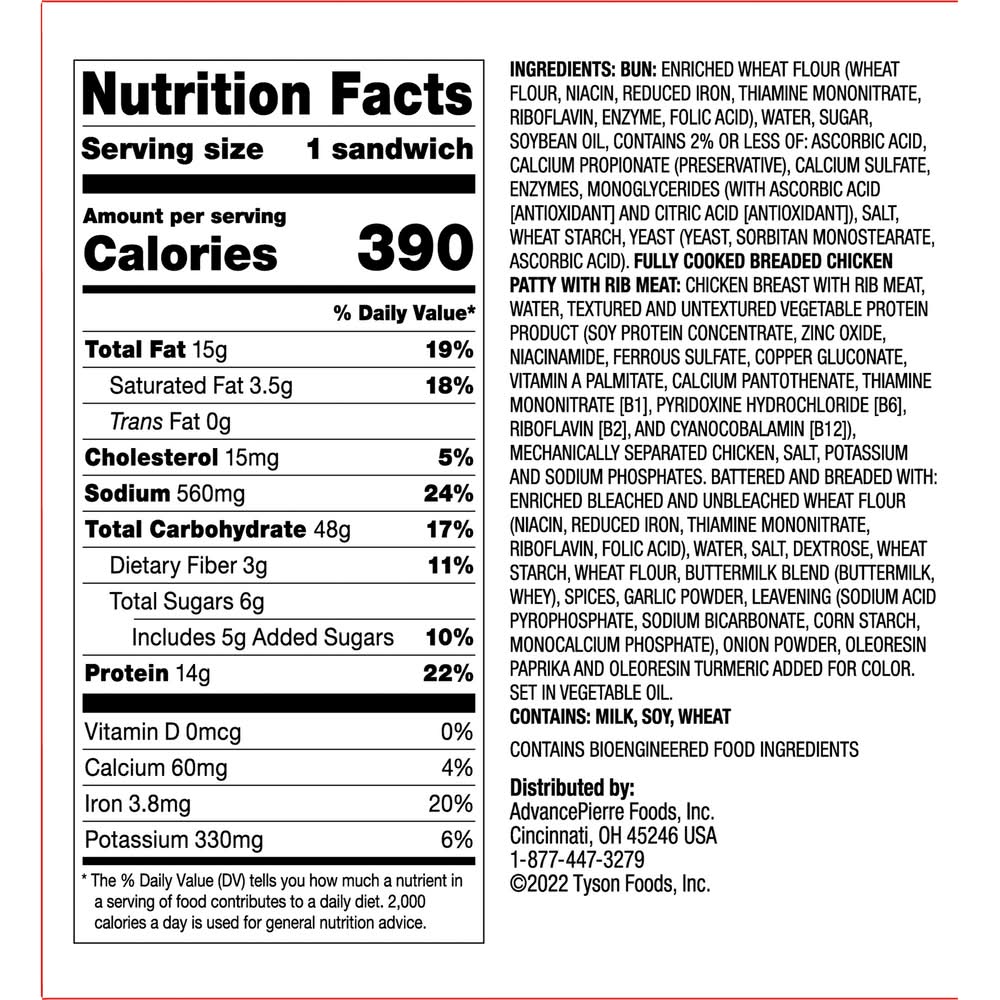 This savory, fully cooked breaded chicken sandwich is ready in minutes, with 16 grams of protein per serving.