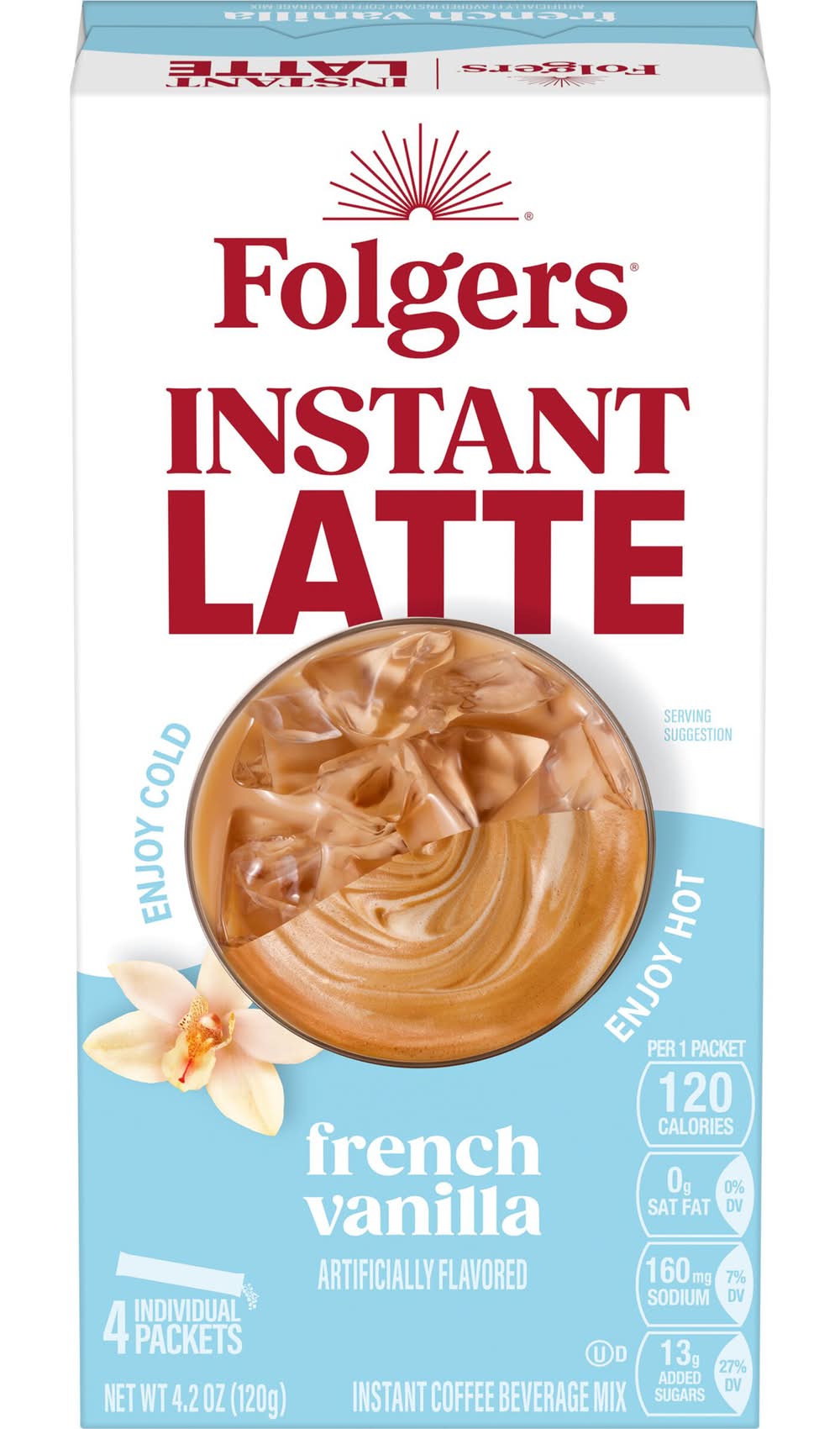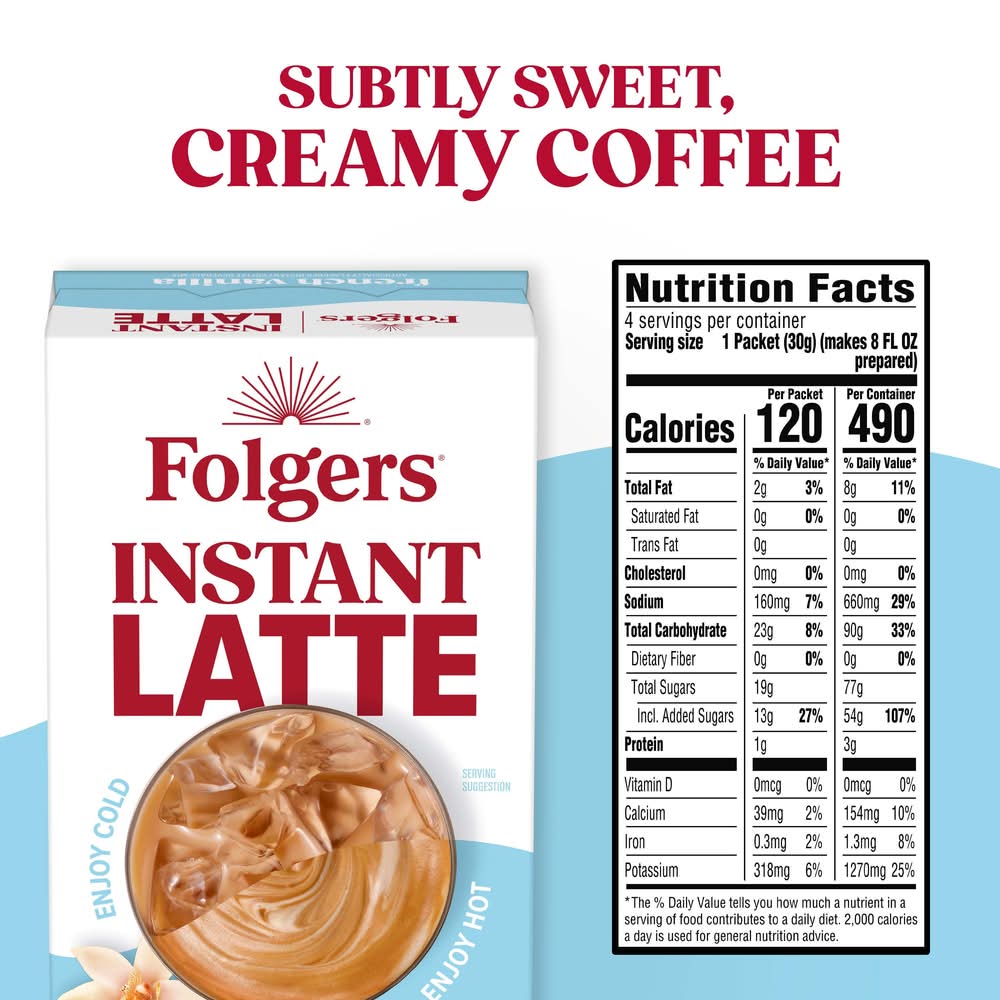 Folgers Instant Latte Packets Artificially Flavored, French Vanilla (4.2 oz, 4 ct)