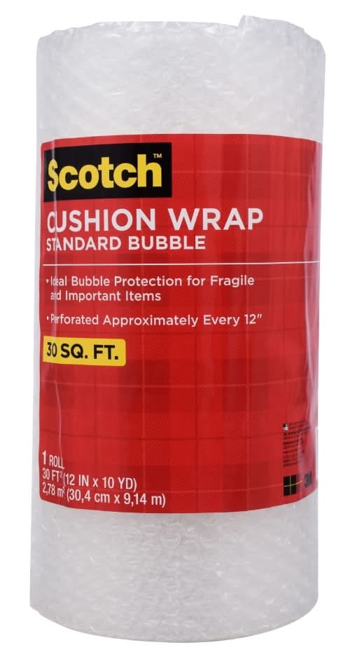 Scotch Standard Bubble Cushion Wrap, 12 in x 30 ft, Clear