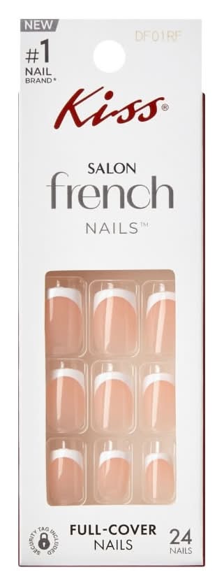 Flawless-looking French nails with the look and strength of salon acrylics that a professional tediously sculpts onto the nails with a brush. But these glue on in minutes! With a bubble-free, flawless finish, these DIY fake nails are thinner at the cuticle for a seamless look.