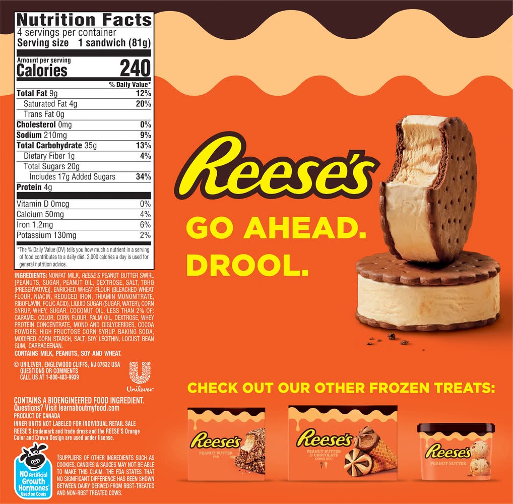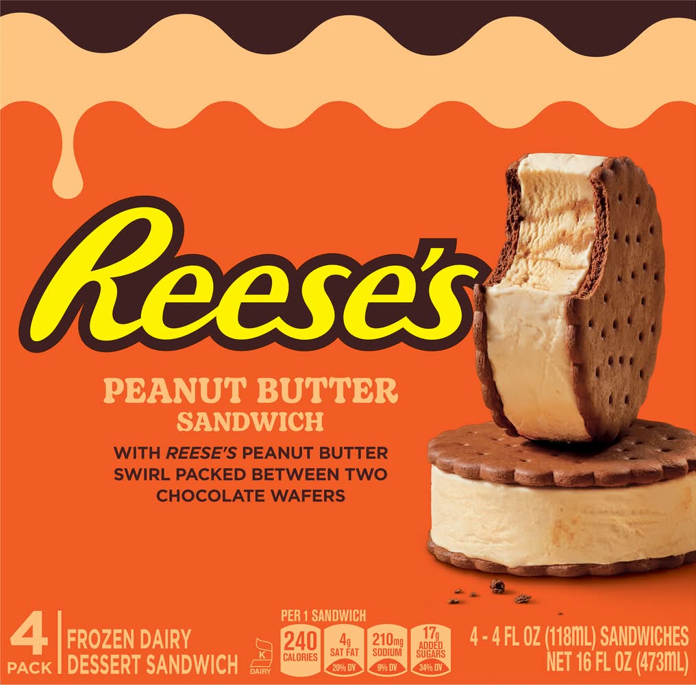 Reese's Frozen Peanut Butter Dairy Dessert Sandwich (4 x 4 fl oz)