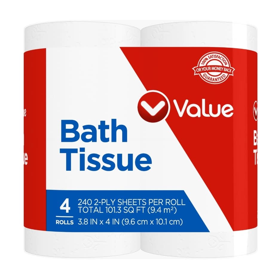 Value Regular Bath Tissue Rolls, 3.8x4 in (4 ct)