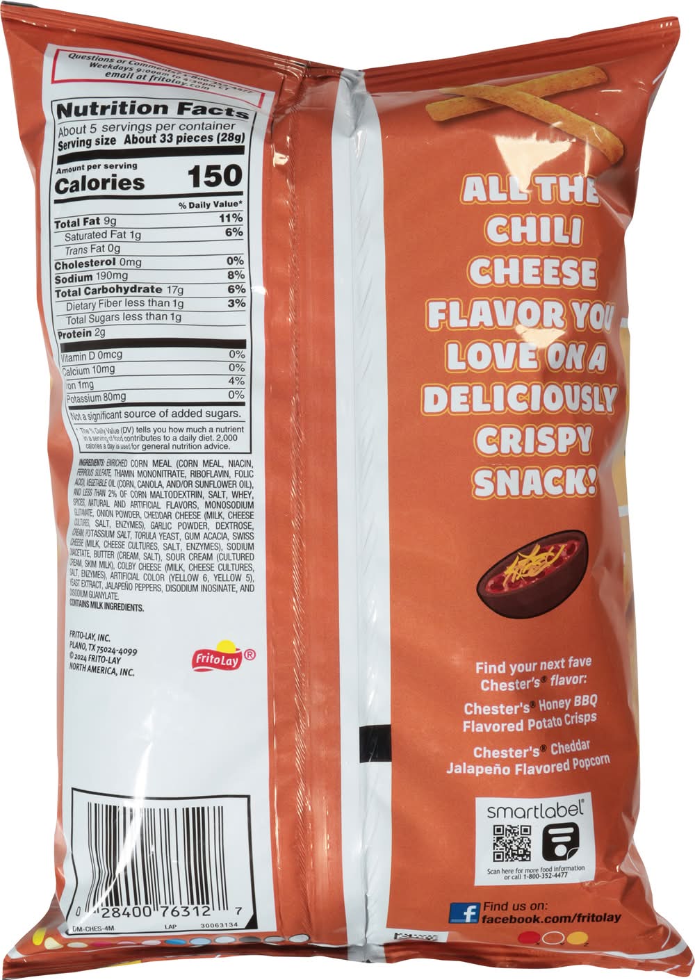 When CHESTER CHEETAH puts his name on a snack, you can count on a bold and cheesy flavor like youve never tasted. CHESTERS snacks are made with a special blend of real cheese seasoning to give each bite the perfect pop and zing. Flavor: Chili cheese