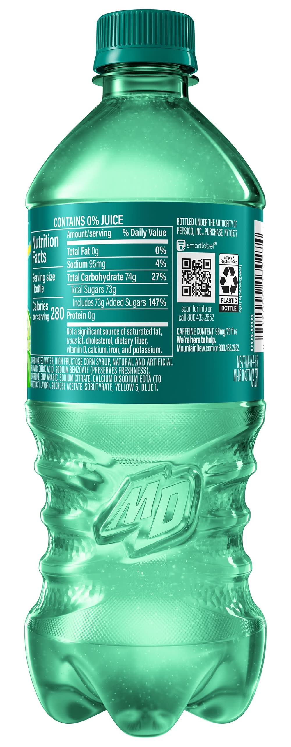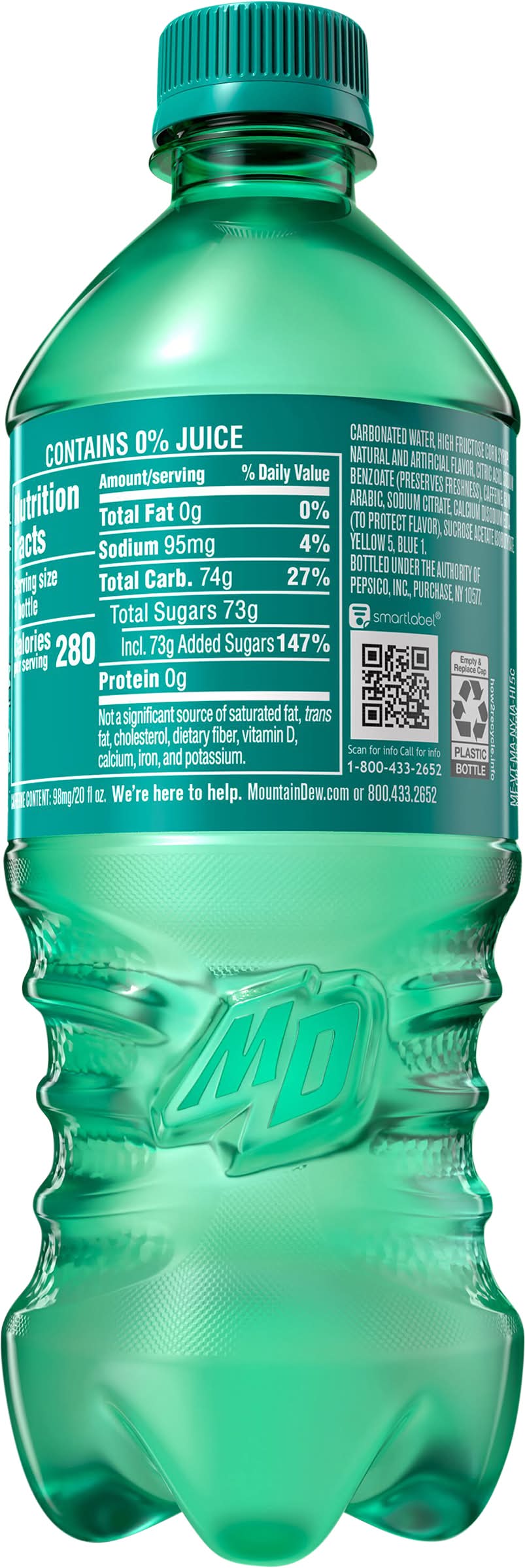 The original, the one that started it all. Mountain Dew exhilarates and quenches with its one of a kind, bold taste. Enjoy its chuggable intense refreshment. Crack open a cold can of Mountain Dew and refresh your taste buds. • Flavor: Tropical lime • Pepsico, Inc., Purchase,NY,10577 • Packaging: Reusable