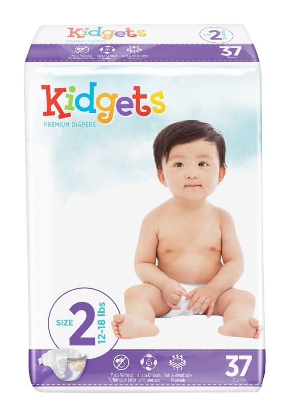 Kidgets Premium Baby Diapers, 2 (37 ct)