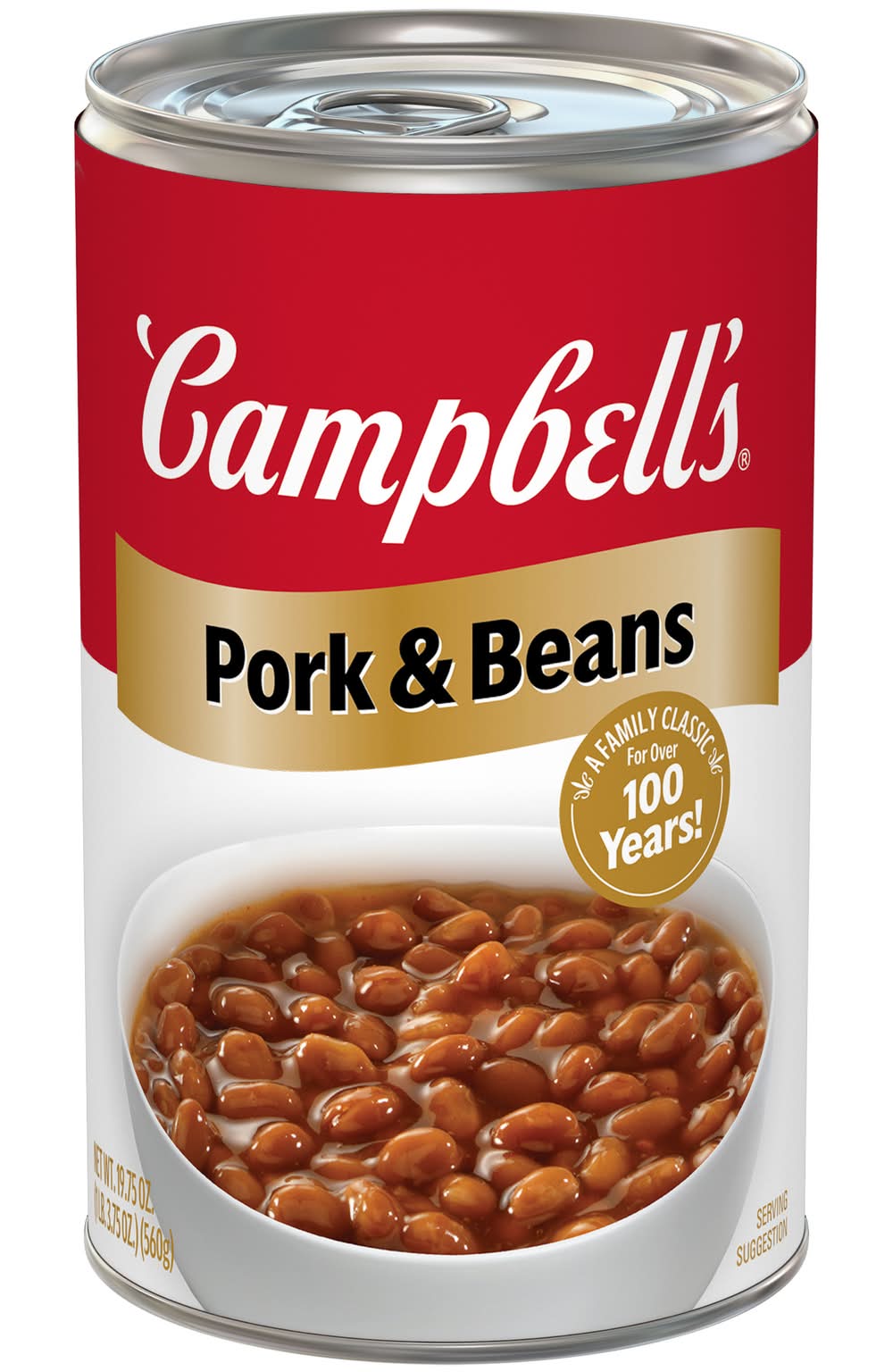 Enjoy a homestyle classic any day of the week with Campbell's Pork and Beans. These tender canned beans combine savory pork with flavorful spices and tomato for a sweet and savory favorite. Ready in minutes, this canned food makes an ideal quick and easy dish on its own, or as a side dish to a family dinner. Each 19.75 oz can contains 4.5 hearty servings. Serve your favorite meals with Pork and beans from Campbell's, a family classic for over 100 years. In addition to Pork and Beans, Campbell's offers Beans and Franks and Country Style Sausage Gravy. • Number of servings: 4 • Campbell Soup Company, Camden, NJ, 08103-1701, Ph: 800-257-8443 • Packaging: Reusable