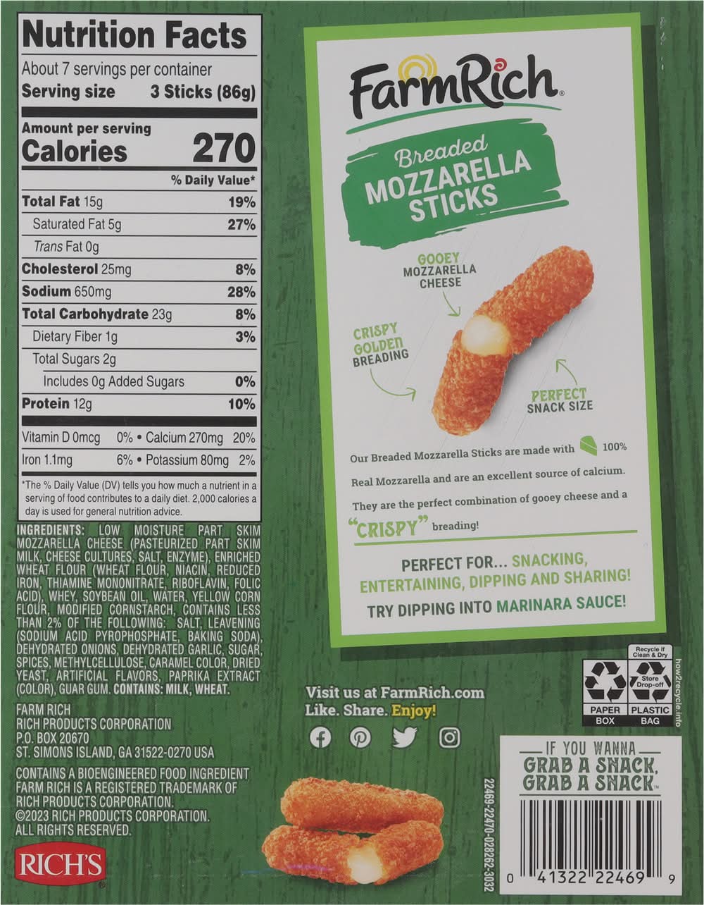 Farm Rich Breaded Mozzarella Sticks (22 oz)