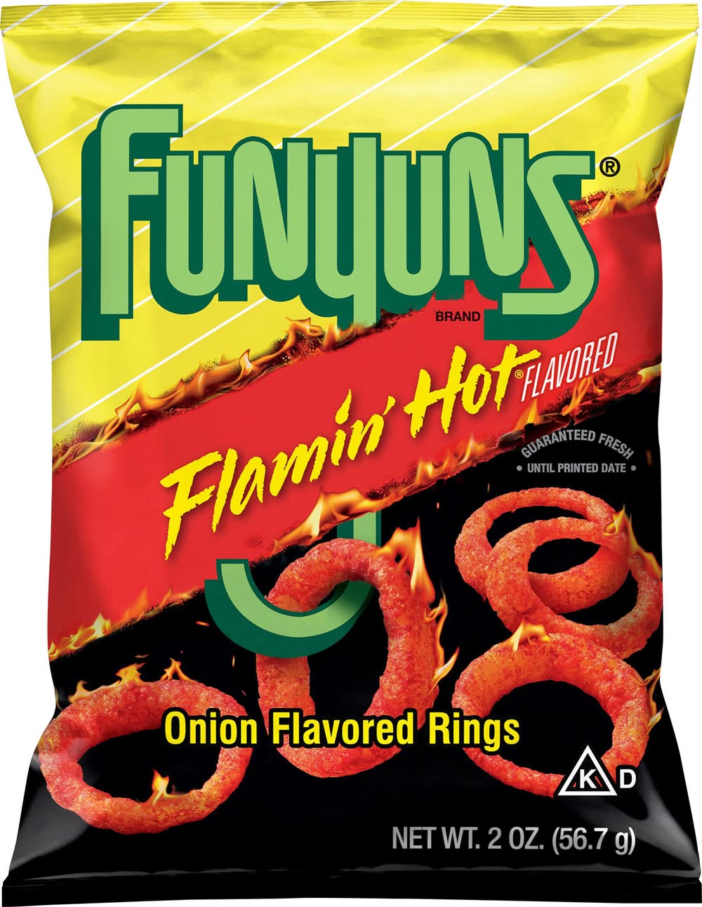 FUNYUNS Onion Flavored Rings are a deliciously different snack that's fun to eat, with a crisp texture and zesty onion flavor. Next time you're in the mood for a tasty treat that's out of the ordinary, try FUNYUNS Onion Flavored Rings. Enjoy these FLAMIN' HOT snacks anytime! Flavor: Flamin' hot
