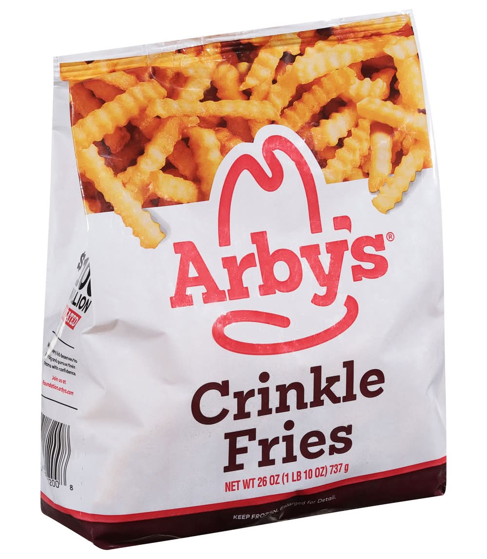 Arbys Crinkle Fries are loaded with real potato flavor. They bake up hot and crispy on the outside and tender on the inside every time. Our crispy grooves have more edges to give you extra crunch in every bite. Grab a bag and enjoy the golden brown fries in the comfort of your own home.