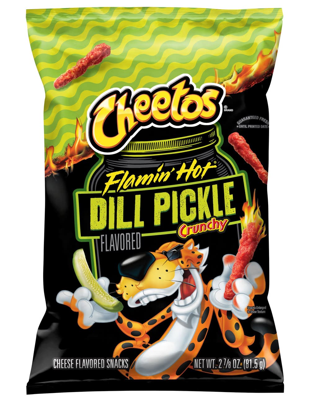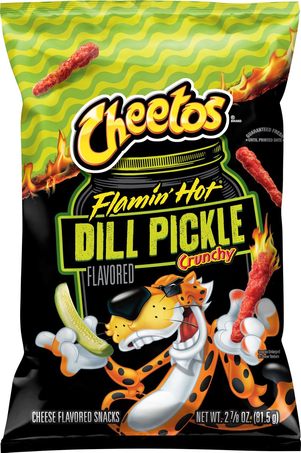CHEETOS snacks are the much-loved cheesy treats that are fun for everyone! You just cant eat a CHEETOS snack without licking the signature cheetle off your fingertips. And wherever the CHEETOS brand and CHESTER CHEETAH go, cheesy smiles are sure to follow. Flavor: Flamin' hot dill pickle