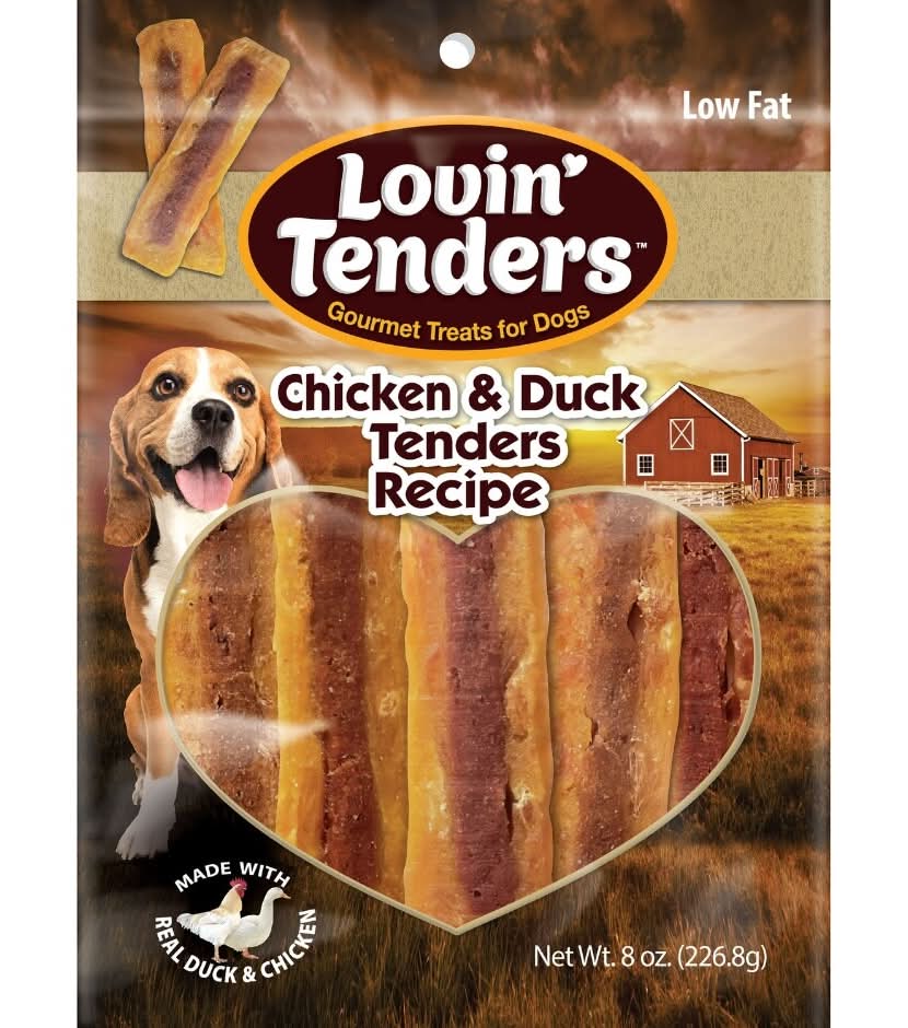 If you want to give your pet a tasty and healthy treat, consider Lovin' Tenders Chicken & Duck Tenders Recipe. Made with all-natural ingredients high in protein and low in fat, these treats come in a resealable pouch to keep them fresh.
