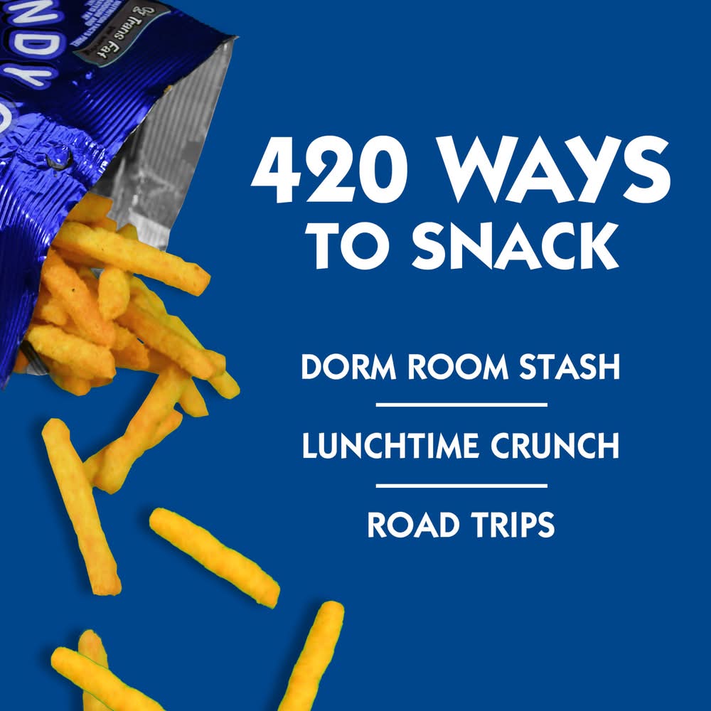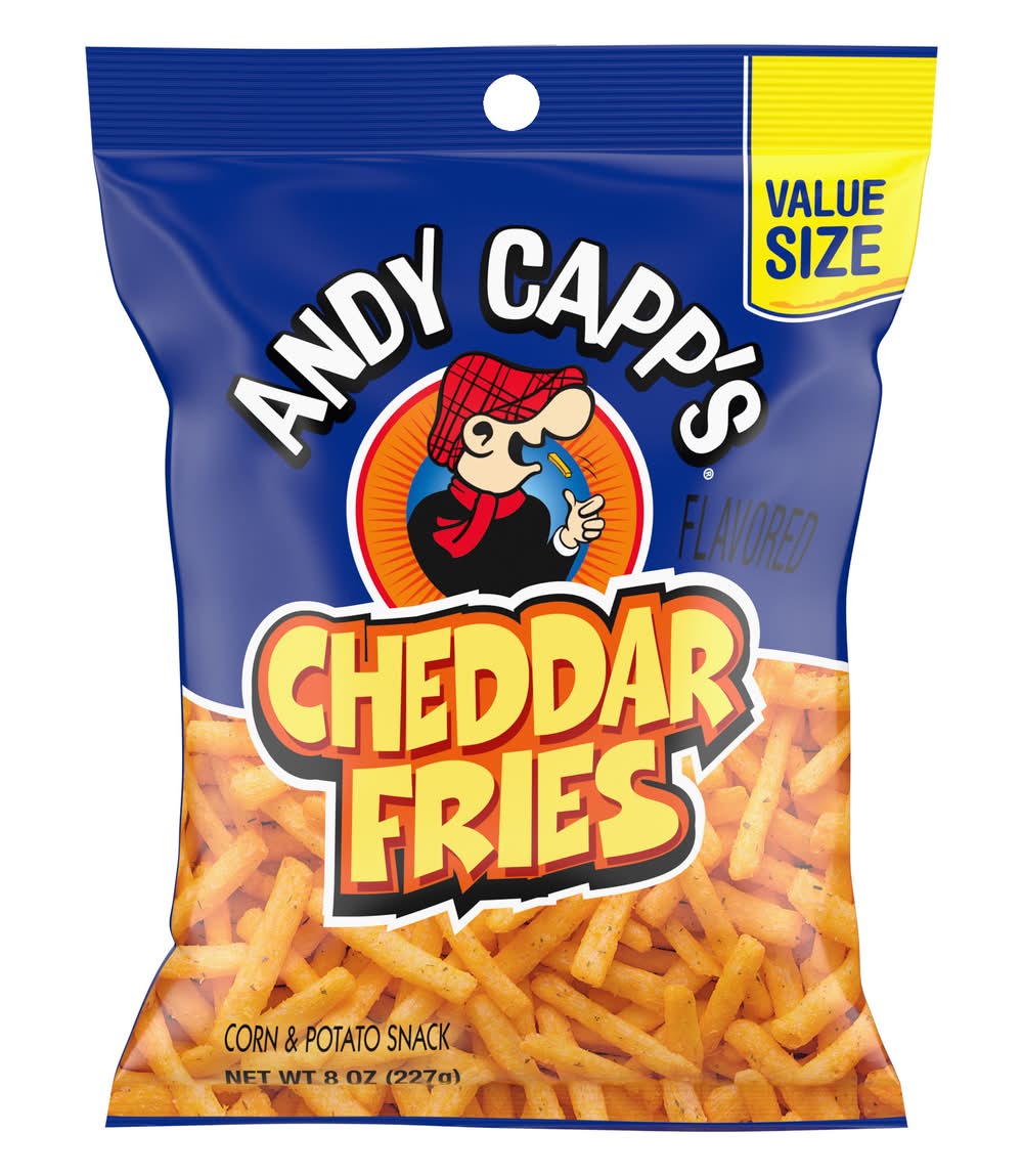 Rediscover a childhood favorite with Andy Capp's Big Bag Cheddar Flavored Fries, a savory alternative to the same-old snacks. Spice up snack time with a big bag of crunchy, cheesy, delicious Andy Capp's flavor. Andy Capp's Cheddar Flavored Fries look like fries and taste like chips, bringing out the kid in all of us. Satisfy your taste buds with the Fries' rich burst of cheddar awesomeness. From road trips to lazy afternoons on the couch, Andy Capp's punches up every snack-worthy activity. Each bag contains 8 oz with 140 calories per serving and 0 grams trans fat. Andy Capp's has been providing a unique and delicious alternative to potato chips for more than 40 years. • Flavor: Cheddar • Conagra Brands, PO Box 3534,Chicago,IL,60654