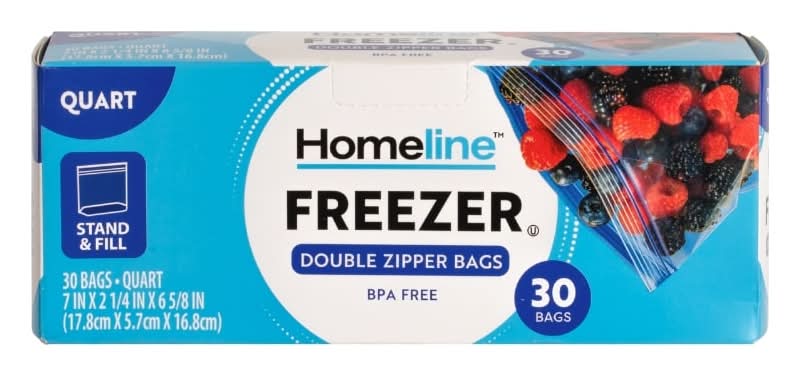 Homeline Freezer Quart Double Zipper Bags, 7x8 in (30 ct)