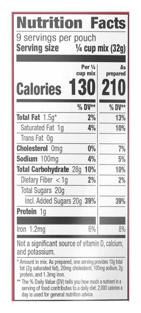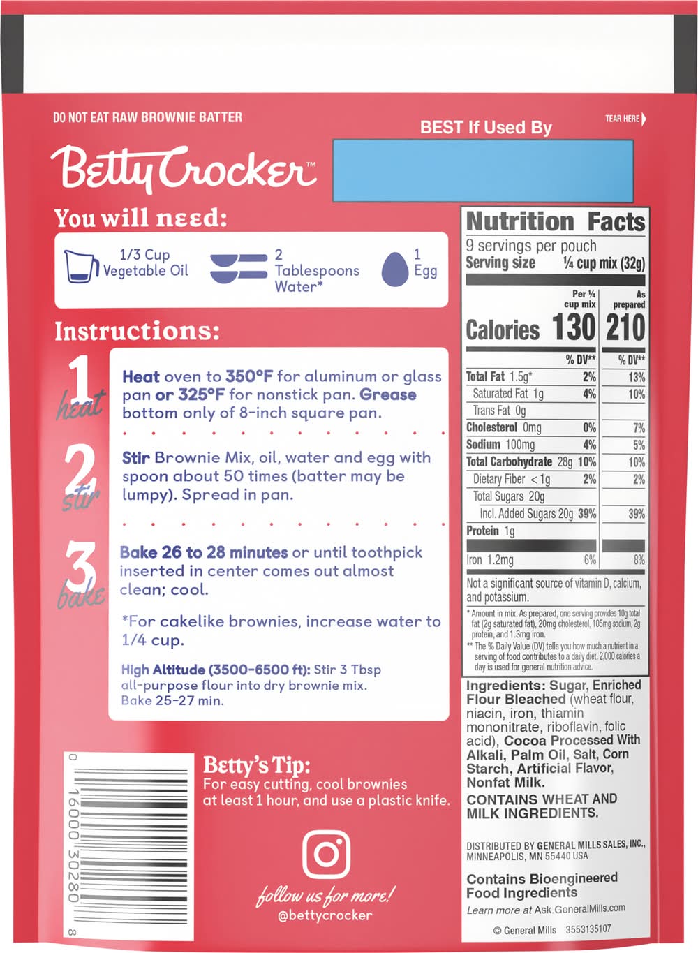 Fudge Brownie Mix • Number of servings: 9 • General Mills Sales, Inc., Minneapolis, MN, 55440