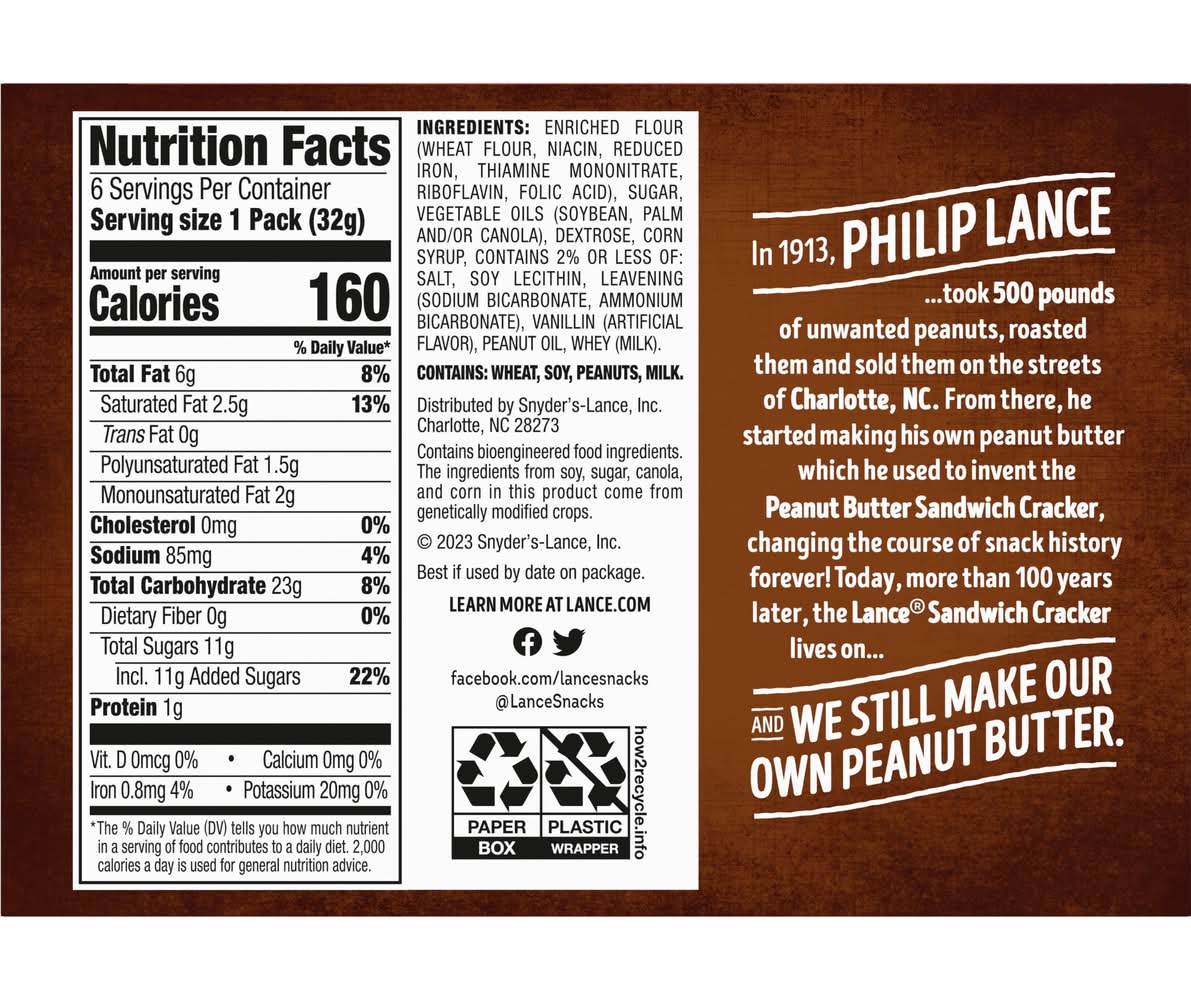 Get ready for a totally tasty treat! With Lance Nekot Vanilla Creme sandwich cookies, we combined the best of our cookie treats with the irresistible, creamy flavor of our smooth vanilla-flavored filling. All wrapped up in single-serve packs, you get the perfect snack, or an ideal dessert treat. Try them for yourself and see what you are missing. At Lance, sandwiches mean more: they aren’t just two somethings with whatever in the middle. A Lance sandwich is two awesomes with incredible in the middle — and we’ve made them that way for over 100 years. So, get ready for more of that irresistible goodness that can make any moment immediately better for you. Whether you’re taking a break or need a quick pick-me-up during your day, enjoy the crunch and smooth vanilla flavor that come with the amazing taste you know and love from Lance. Your one and only Lance Sandwich crackers are the king of all sandwich crackers — and cookies. Bring it! Packaging: Reusable