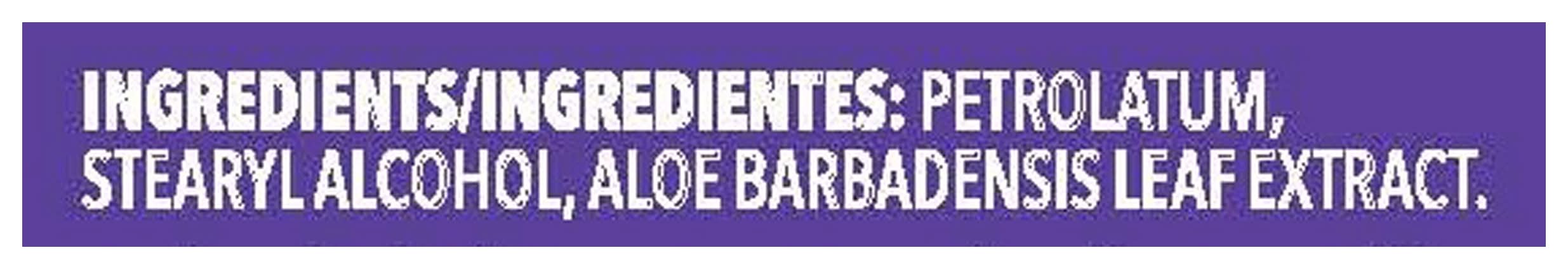 Ingredients: Petrolatum, Stearyl Alcohol, Aloe Barbadensis Leaf Extract