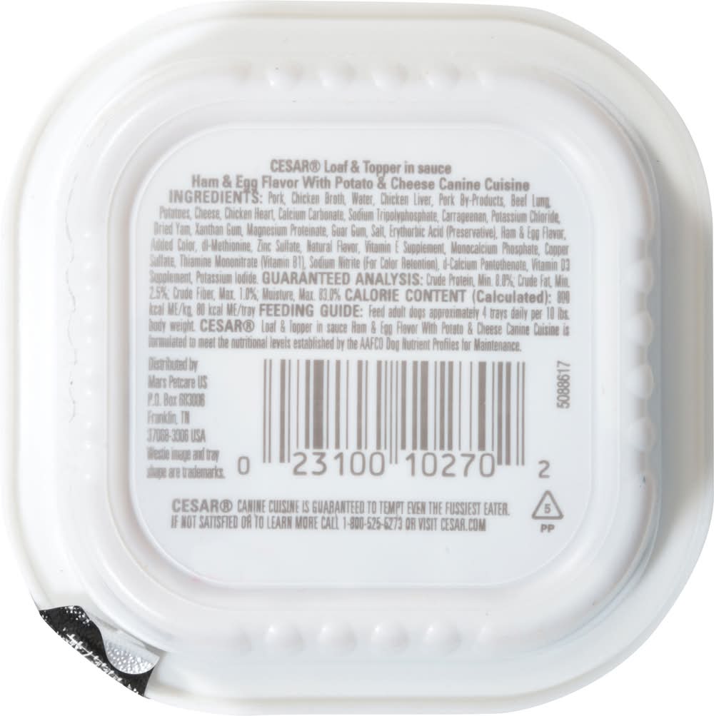 Loaf & Topper in Sauce Ham & Egg Flavor with Potato & Cheese Canine Cuisine • Mars Petcare US, PO Box 683006,Franklin,TN,37068-3006,USA • Packaging: Reusable