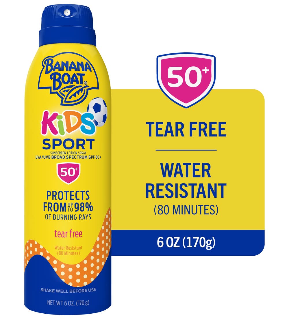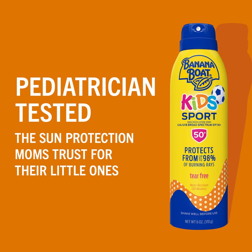 When your kids are active outdoors, they need powerful sun protection thats mild and gentle enough for their sensitive skin. Available in tear-free, sting-free lotion and lotion spray, Banana Boat Kids Sport Sunscreen with PowerStay Technology has a mild spray lotion formula that wont irritate skin and strong sun protection that stays on so you can play on. It's the clinically proven UVA/UVB protection that families trust, with a lightweight, quick-absorbing formula that wont run into eyes. Free from oxybenzone and octinoxate, Banana Boat Kids Sunscreen is water resistant up to 80 minutes. Edgewell Personal Care Brands, Llc, Shelton, CT, 06484