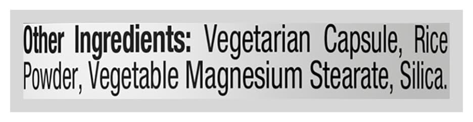 Ingredients: Other Ingredients: Vegetarian Capsule, Rice Powder, Vegetable Magnesium Stearate, Silica