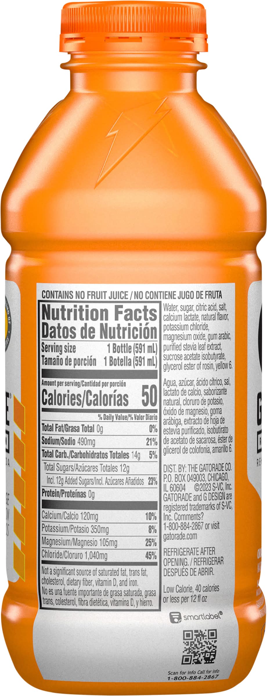 Naturally flavored with other natural flavors. No artificial sweeteners or flavors lower sugar than leading sports drink • Flavor: Orange • The Gatorade Co., P.O. Box 049003,Chicago,IL,60604