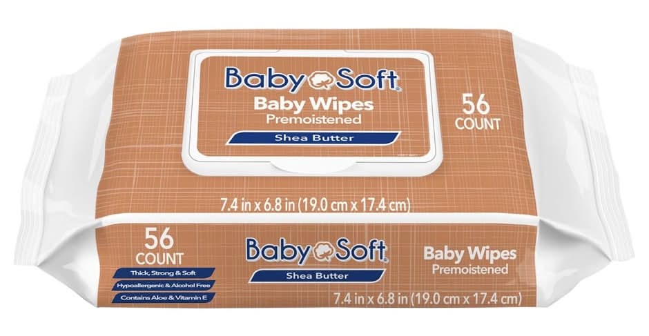 Baby Soft Baby Wipes, Shea Butter, 7.4x6.8 in (56 ct)