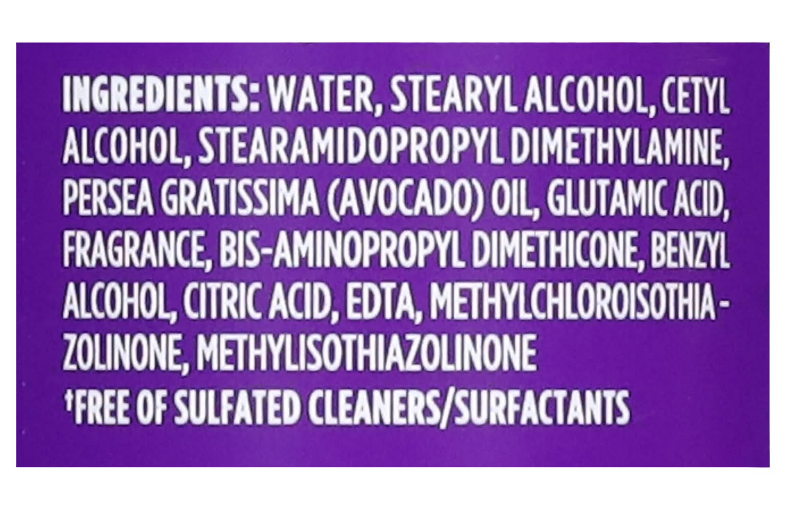 Ingredients: Water, Stearyl Alcohol, Cetyl Alcohol, Stearamidopropyl Dimethylamine, Persea Gratissima (Avocado) Oil, Glutamic Acid, Fragrance, Bis-Aminopropyl Dimethicone, Benzyl Alcohol, Citric Acid, EDTA, Methylchloroisothiazolinone, Methylisothiazolinone