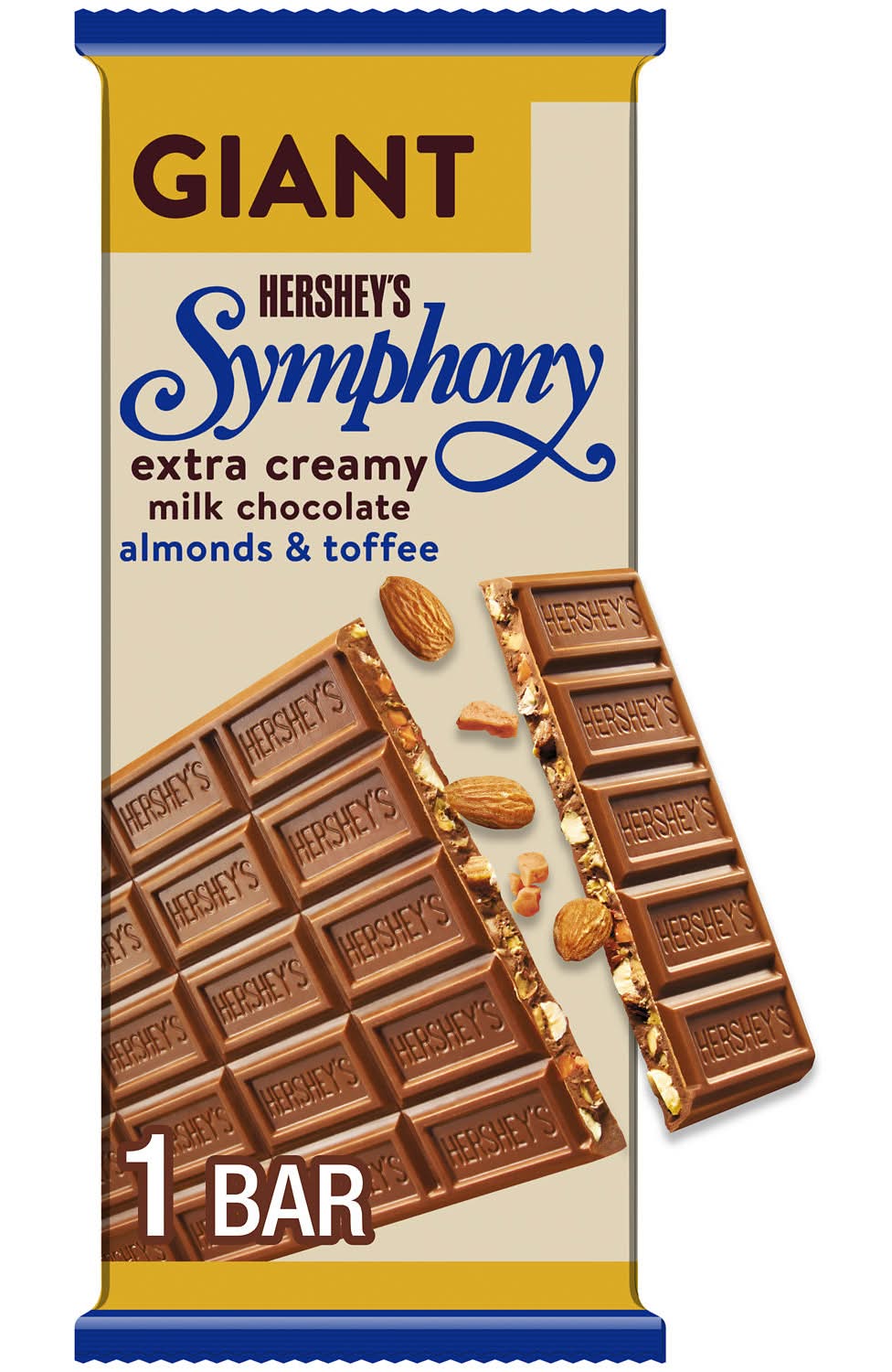 It's a candy bar so good, you'll start to hear sweet melodies This giant candy bar features crunchy almonds, rich toffee and smooth, extra creamy milk chocolate creating the perfect harmony of flavors. Keep a giant bar with you at home or work, and you'll always have a decadent treat within reach. milk chocolate with toffee and almonds is a delicious candy to enjoy on your own or share with friends and family members on any given day. Whether you need Easter candy, Halloween treats, Christmas sweets or Valentine's Day gifts to make those around you swoon, candy will take care of any sweet snacking requirement. In fact, with milk chocolate candy bars, you won't need a special occasion to enjoy a premium snack. You can make any day a special one once you get your hands on this creamy chocolate bar. Break this bar into perfectly shareable sections at work, on road trips and at home to bring the stunning mix of rich toffee, crunchy almonds and extra creamy milk chocolate along for the ride. Looking to find a new rhythm Try adding sections of this giant candy bar to your favorite baked good. It's sure to add an extra delectable touch and please your entire audience.