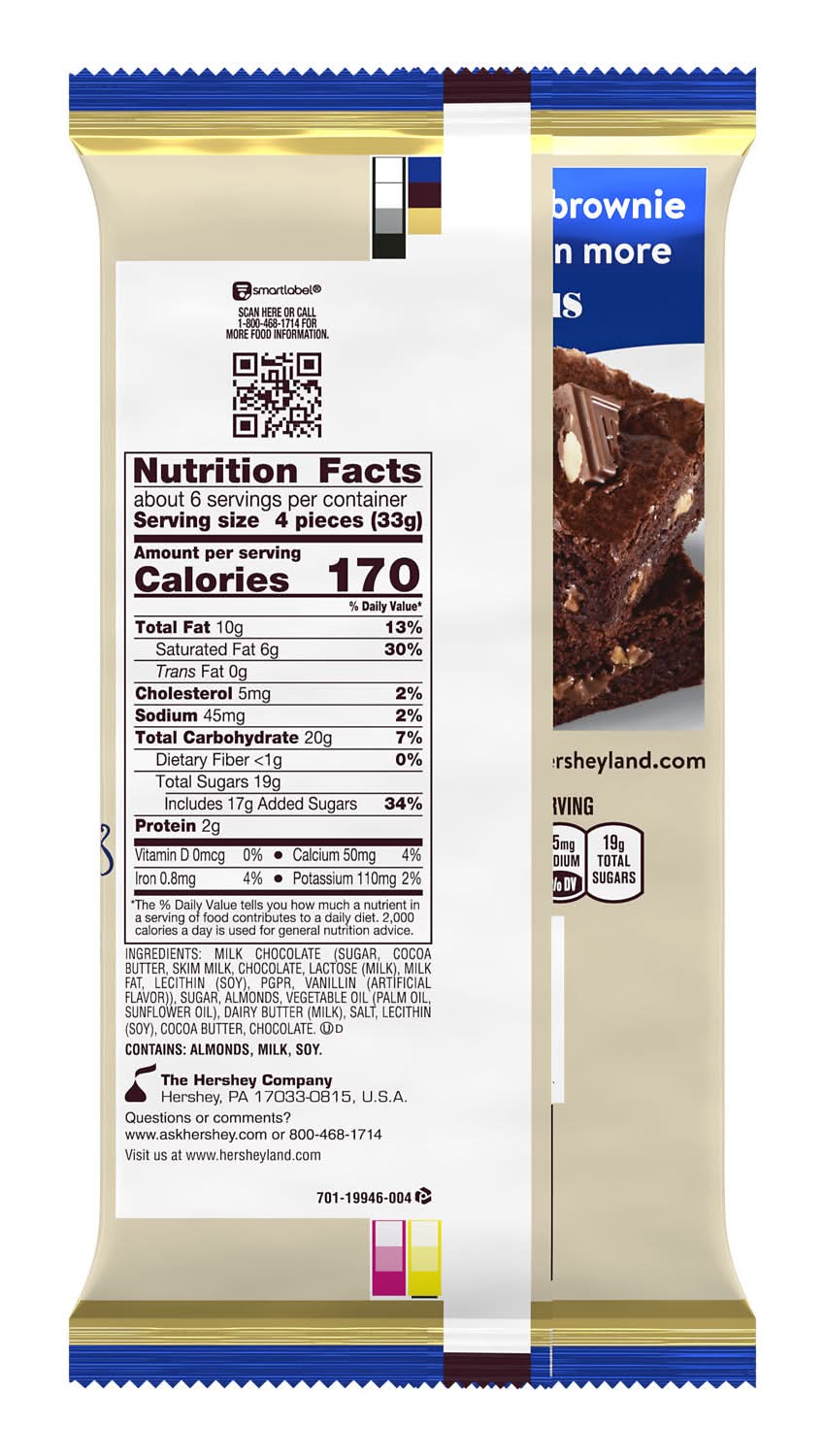 Hershey's Giant Extra Creamy Milk Chocolate Almonds & Toffee Candy Bar (7.37 oz, 25 ct)
