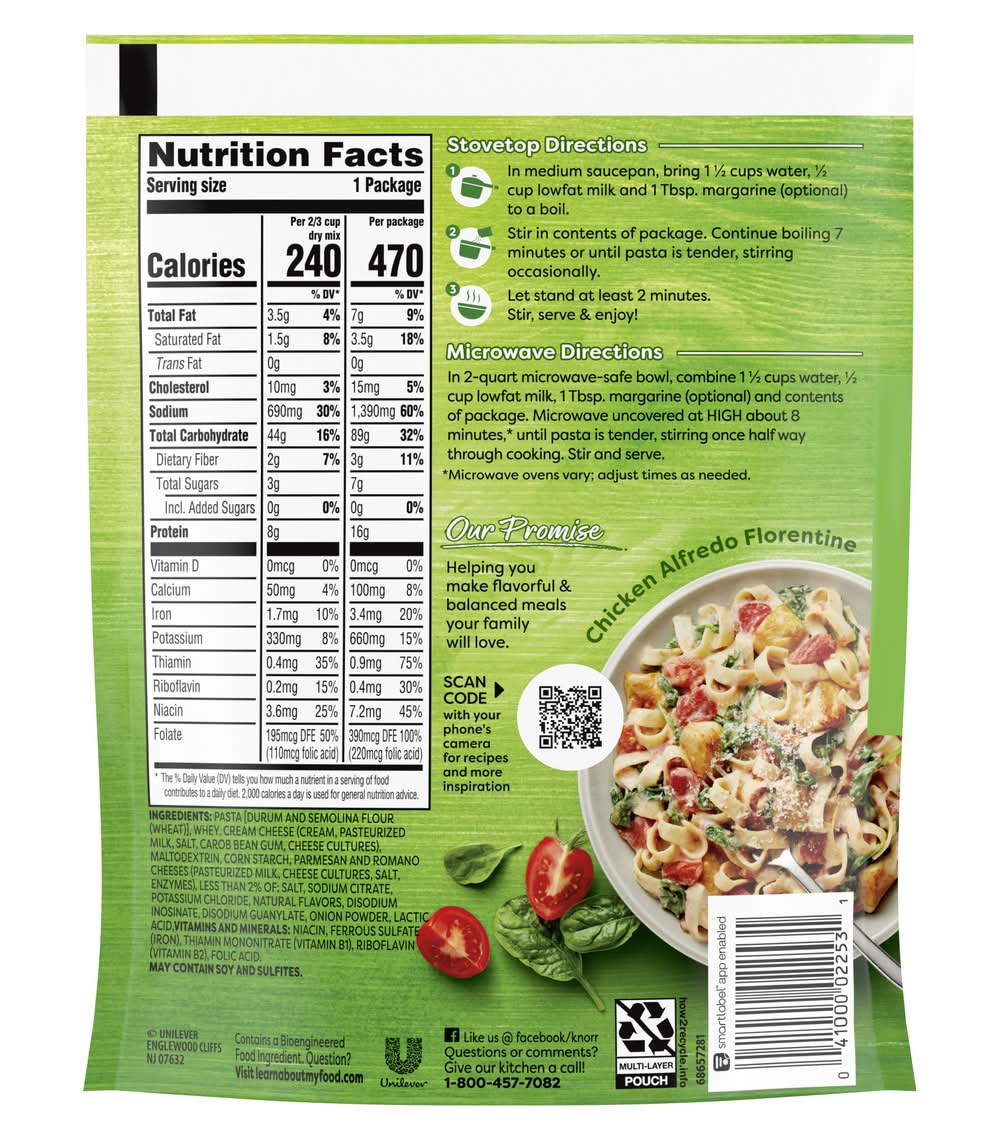 Creamy alfredo mix is a perfect addition to so many homecooked meals. Whether you're an expert or a novice at cooking these Knoor® Pasta Sides are a great way to make cooking simpler. Unilever, Englewood Cliffs,NJ,07632