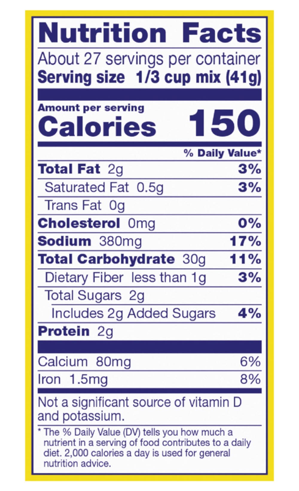 Original Pancake & Baking Mix • Flavor: Original • General Mills Sales, Minneapolis,, MN, 55440 • Packaging: Reusable