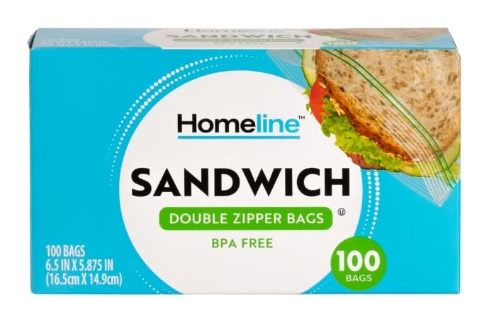 Homeline Sandwich Double Zipper Bags, 6.5x8.5 in (100 ct)