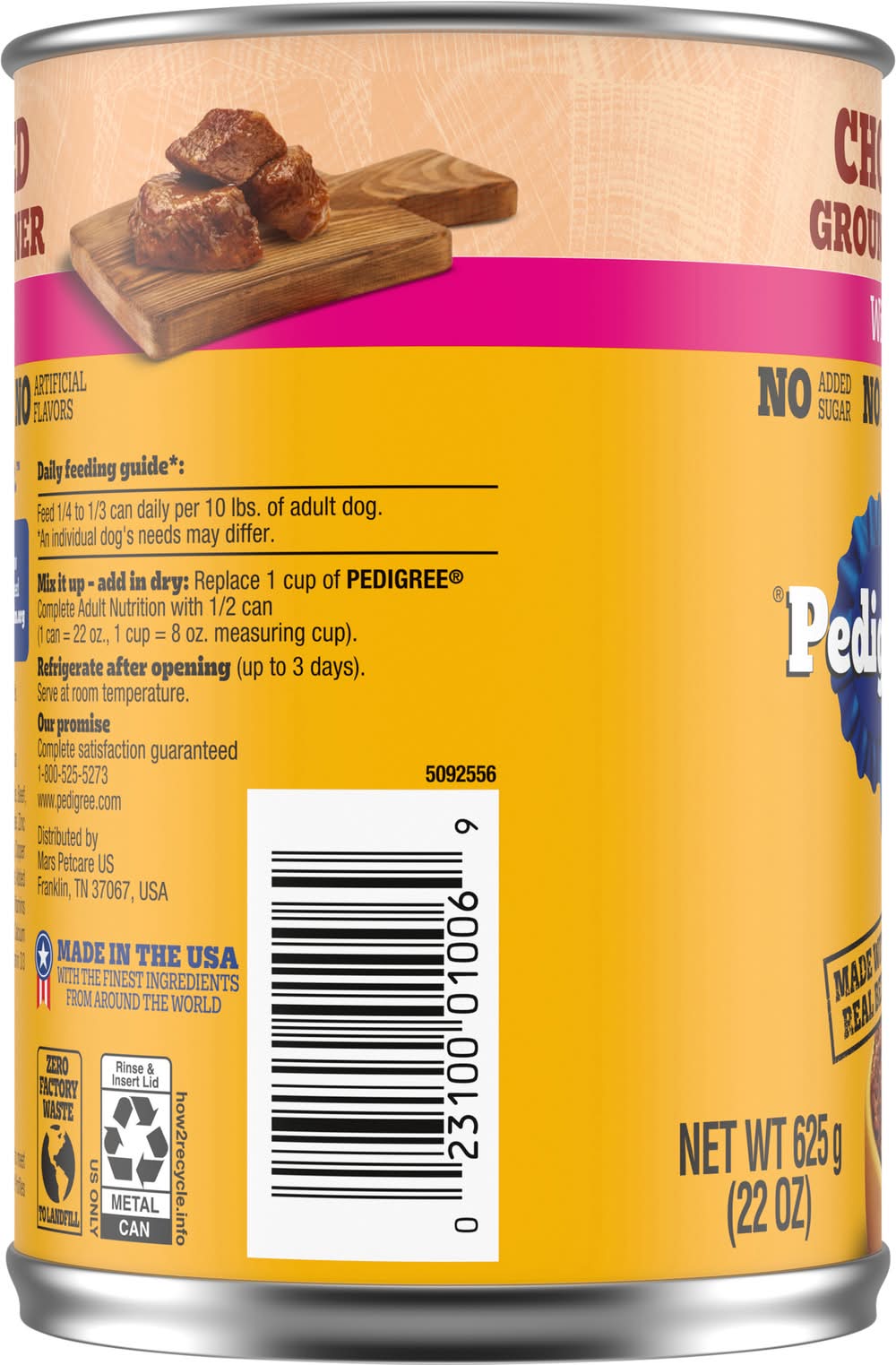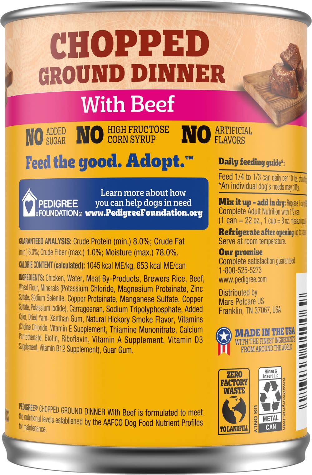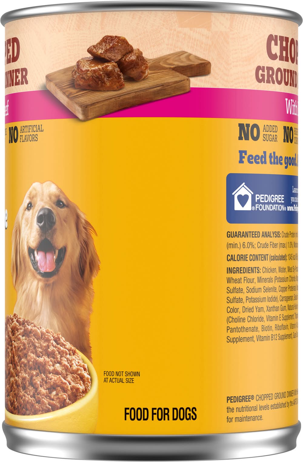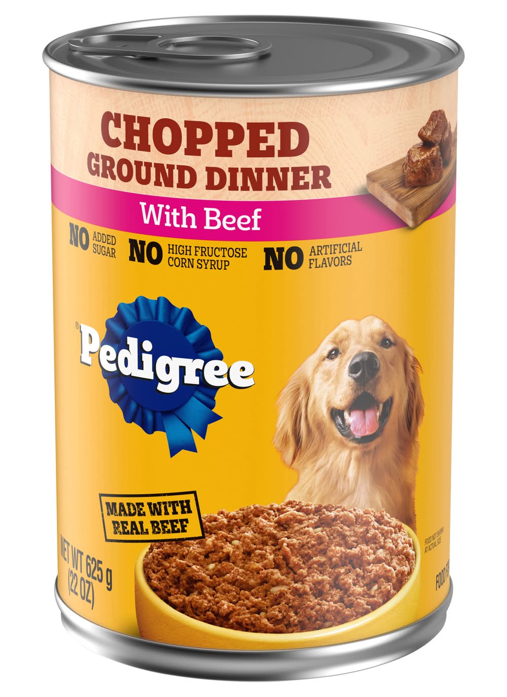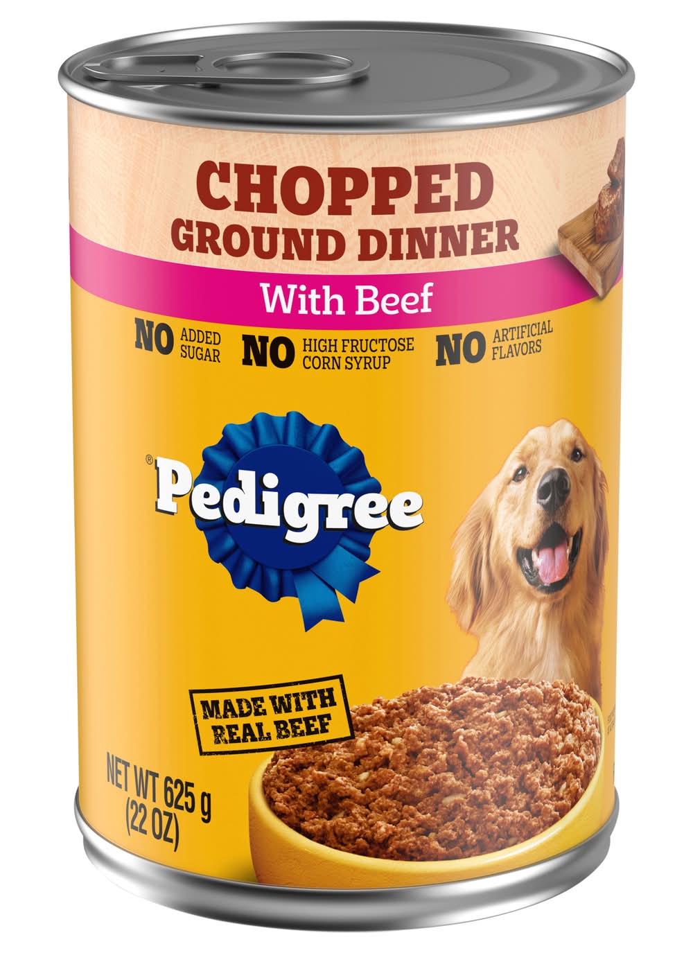 PEDIGREE CHOPPED GROUND DINNER soft, wet dog food with beef gives your dog the flavors they crave with the nutrition they need. Your adult dog can enjoy the delicious taste of real beef in every bite with our hearty wet dog food. PEDIGREE formulas provide the perfect balance of vitamins and minerals with no artificial flavor, no added sugar, and no high fructose corn syrup. Each recipe is balanced for adult dogs, so you know they are getting the most from their wet dog food. You can serve this dog food as a topper, mixer or on its own. Any way you serve it up, PEDIGREE canned dog food can help your dog grow happy and healthy.