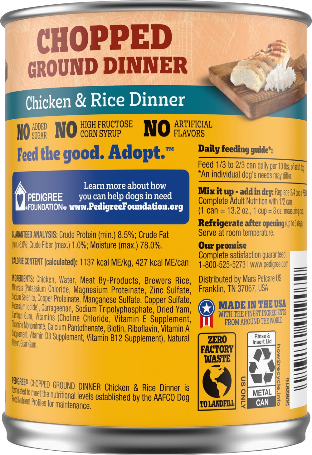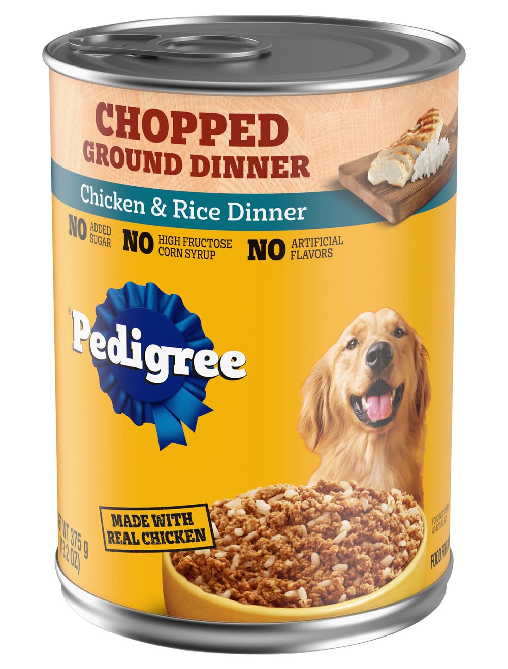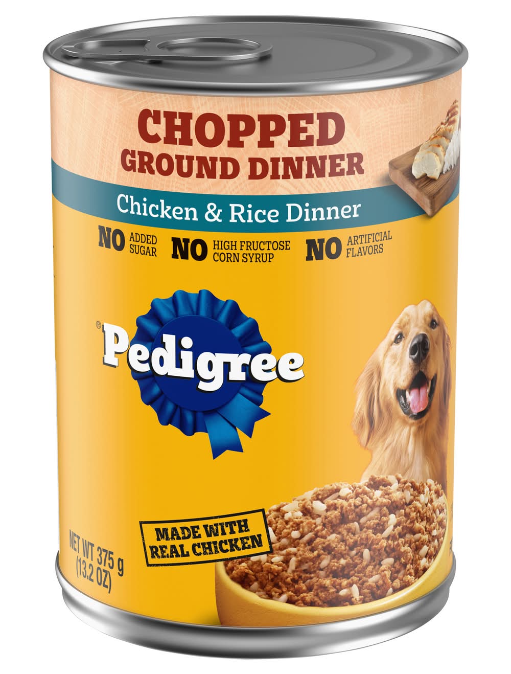 Pedigree Chopped Ground Dinner Canned Wet Dog Food, Chicken & Rice (13.2 oz)
