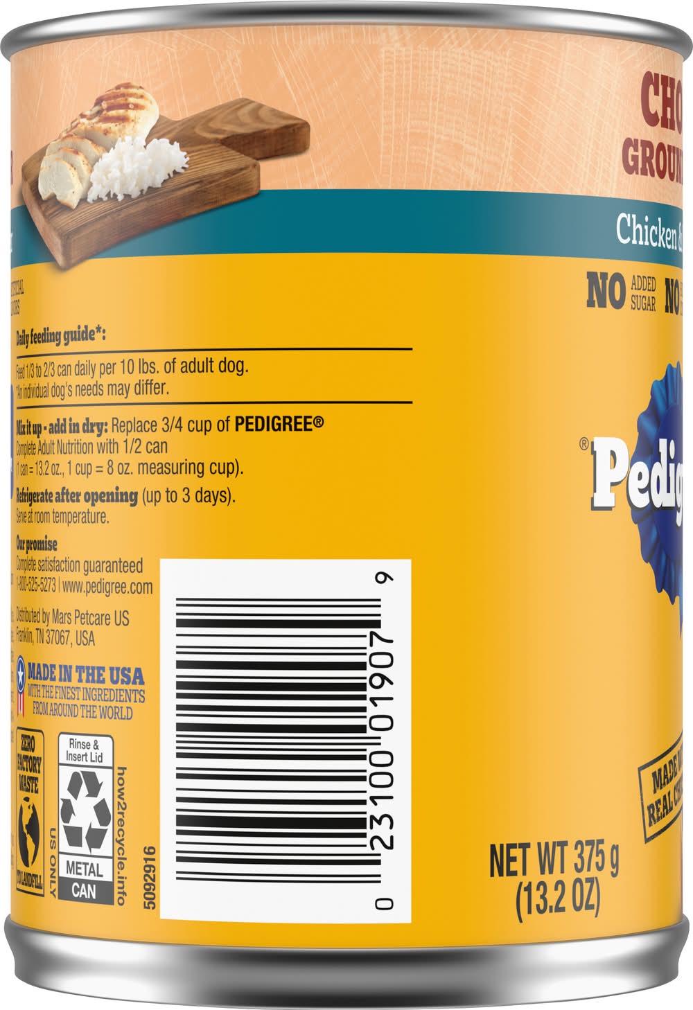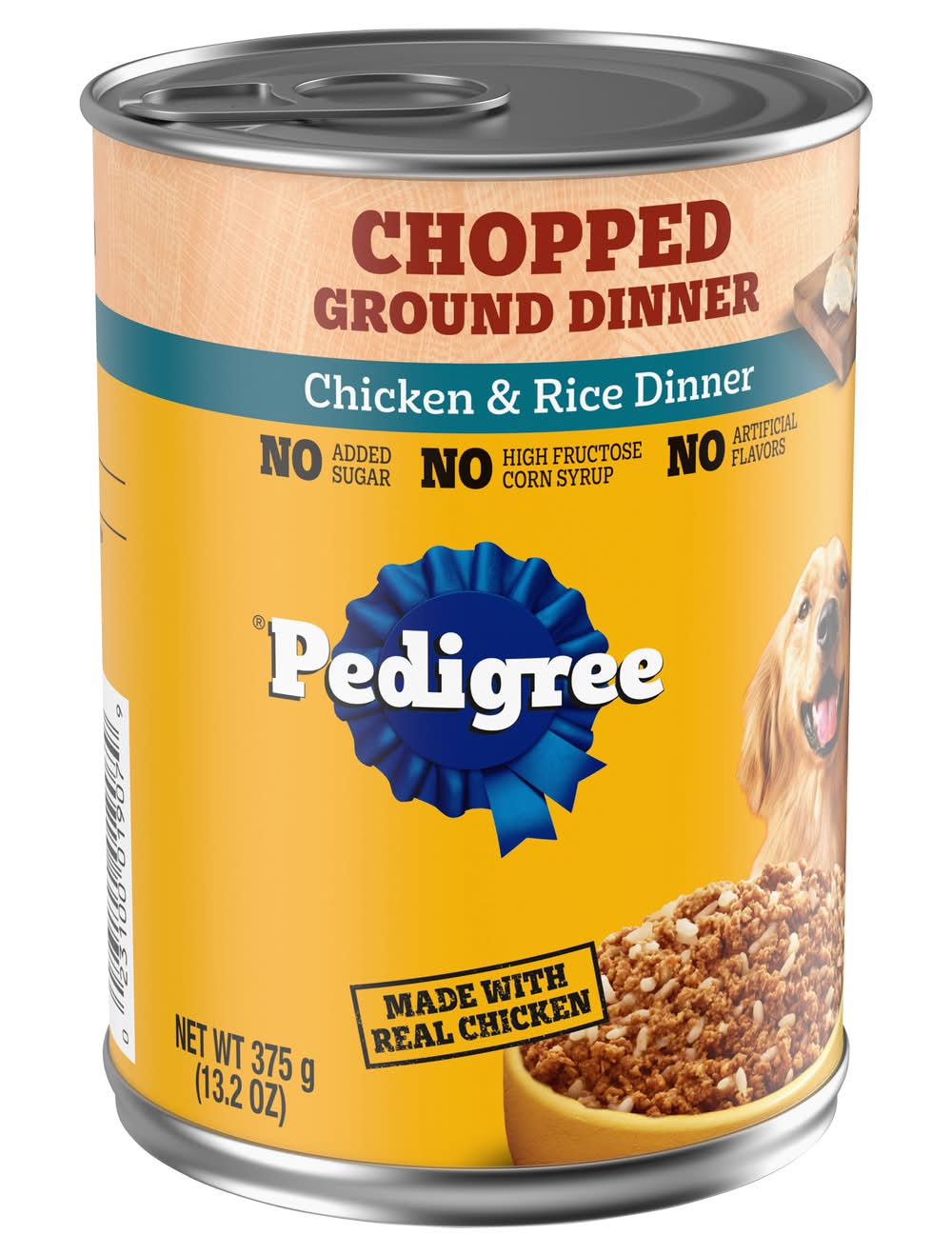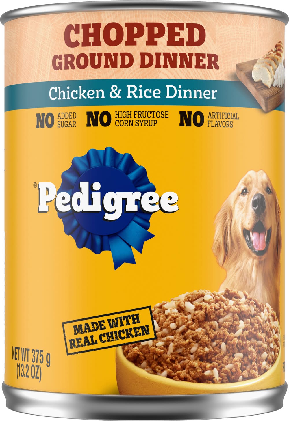 Pedigree Chopped Ground Dinner Canned Wet Dog Food, Chicken & Rice (13.2 oz)