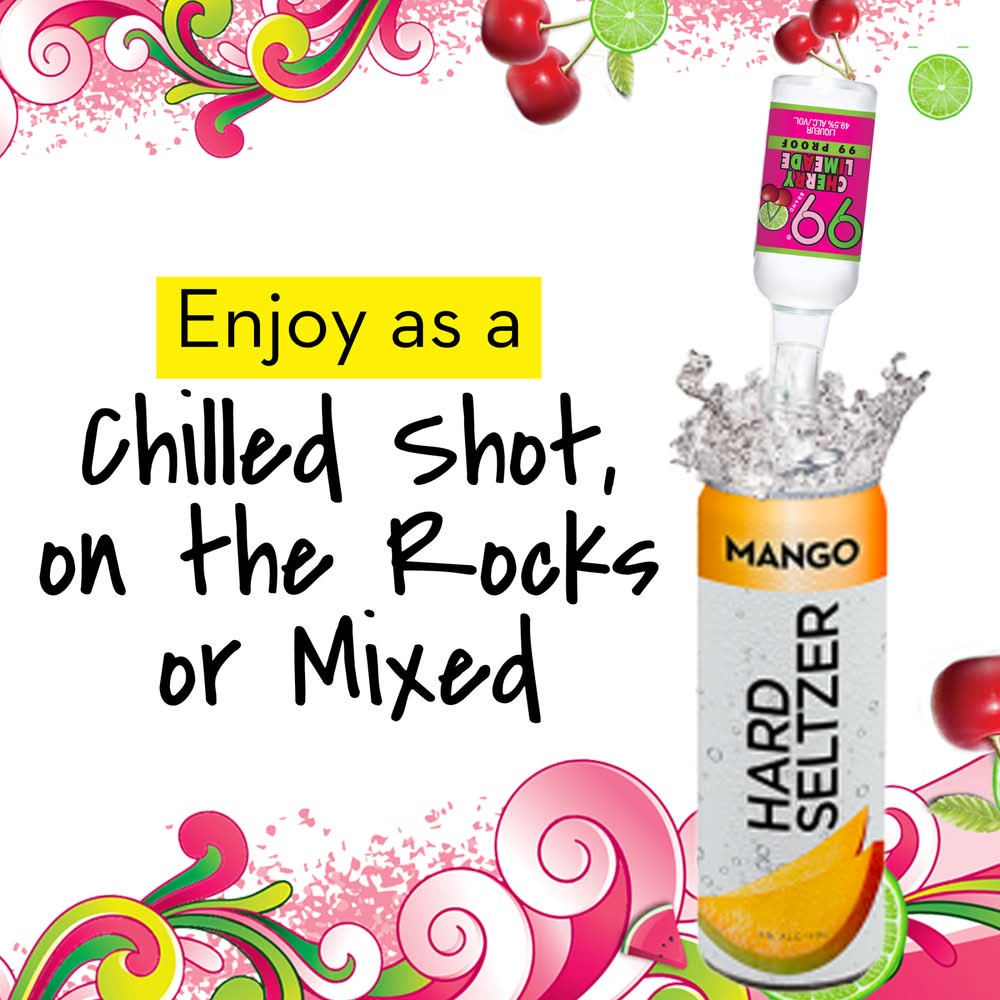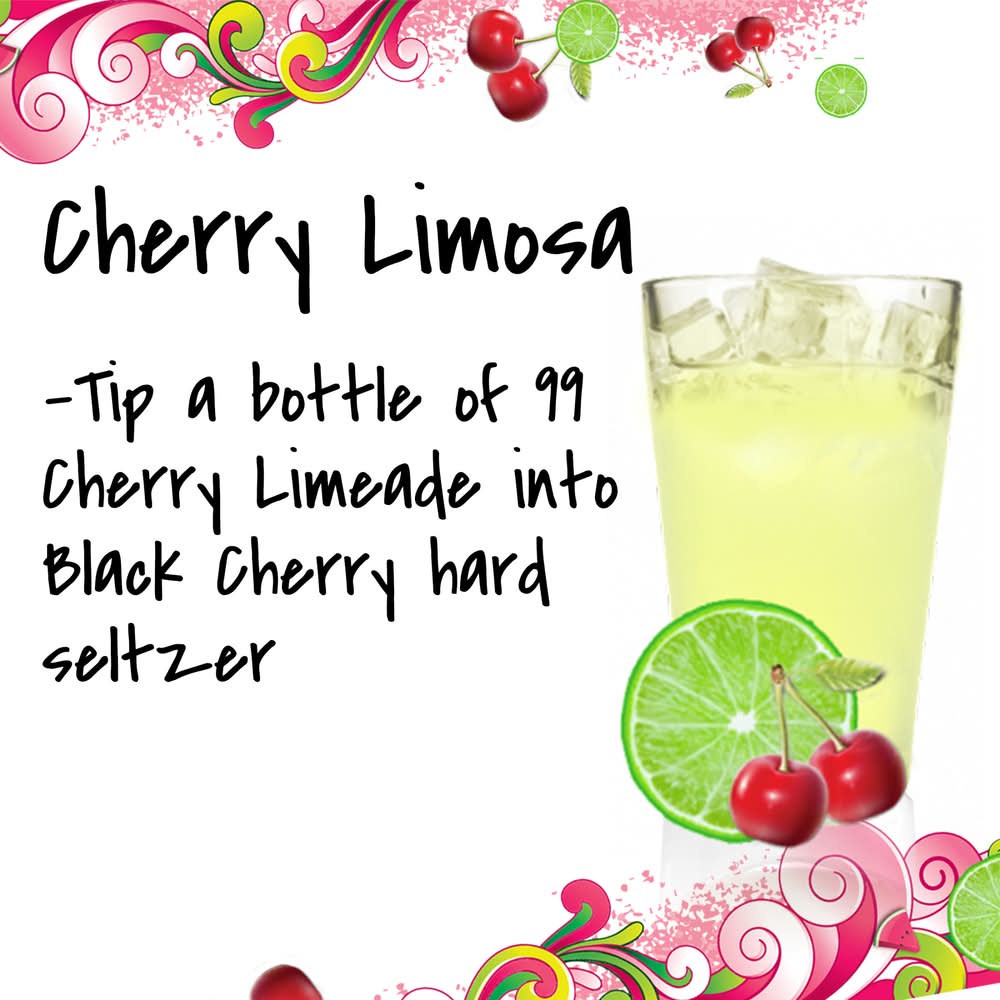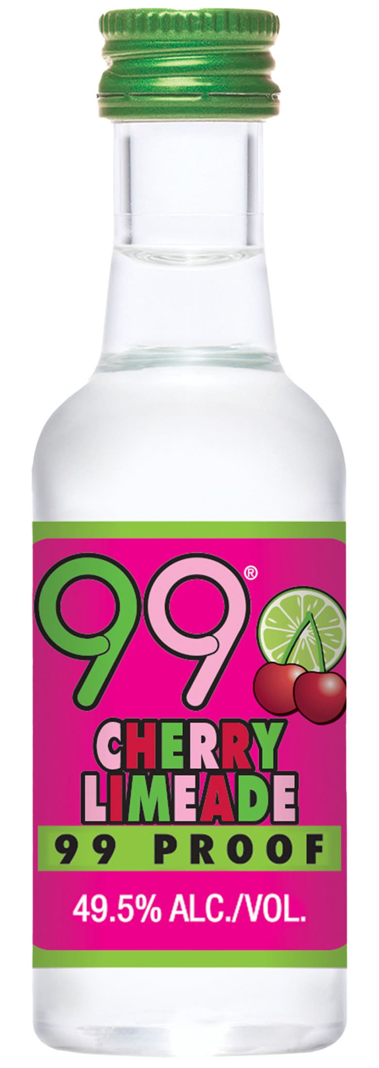 Liven up your experience with the exciting flavor Cherry Limeade Liqueur. With 27 cordials flavors and growing. These liqueur shots are an amazing way to celebrate the good times and chill vibes. Each bottle Cherry Limeade liqueur drinks has zero sugar and 155 calories per 1.5 ounce shot. 99 can be enjoyed straight out of the bottle as shots for a burst of tasty cherry limeade flavor. Perfect for any party or celebration with friends, It tastes great in a multitude of spectacular alcoholic beverages, cocktails and mixed drinks. Add this liqueur to your hard seltzer for a full flavor explosion or combine this cherry limeade liqueur shot with other 99 Brand liqueurs, like 99 Bananas, to make a variety of delicious alcoholic beverages. Store it at room temperature or pour it from your freezer for an icy shot • Brand: 99 brand • Category: Fruit liqueur • Flavor: Cherry limeade • Alcohol by volume: 49.5%