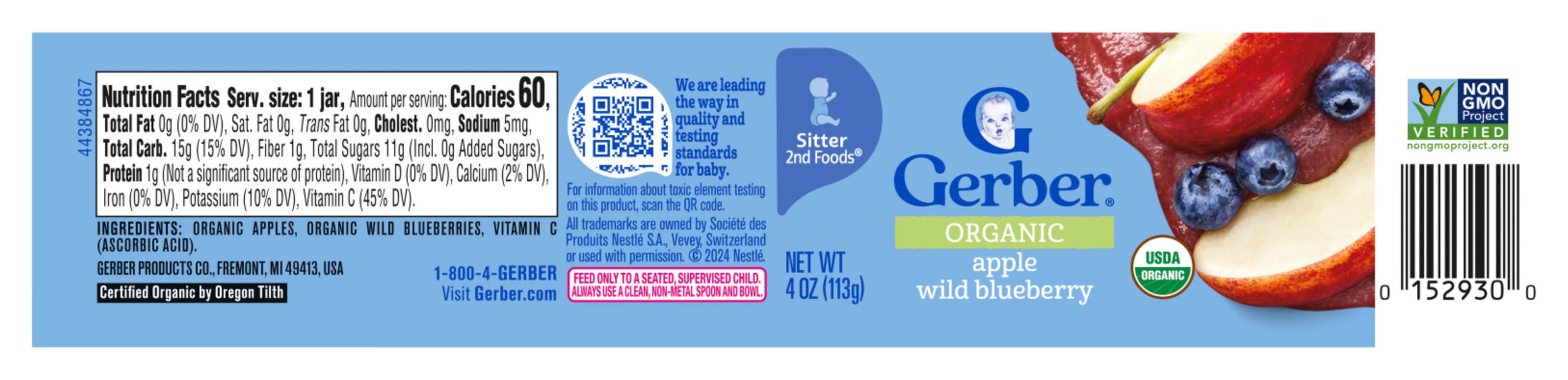Gerber Organic For Baby Apple Wild Blueberry (4 oz)